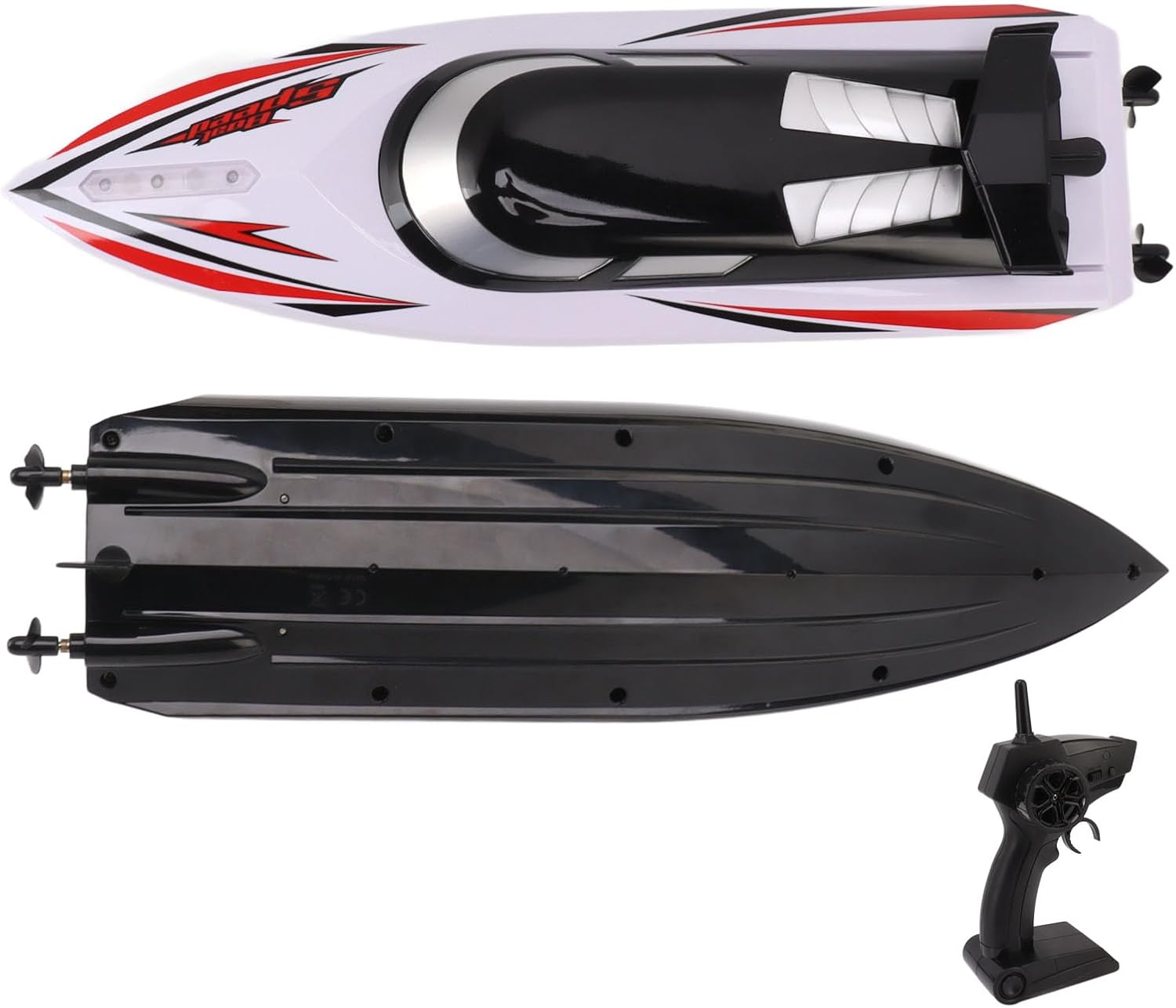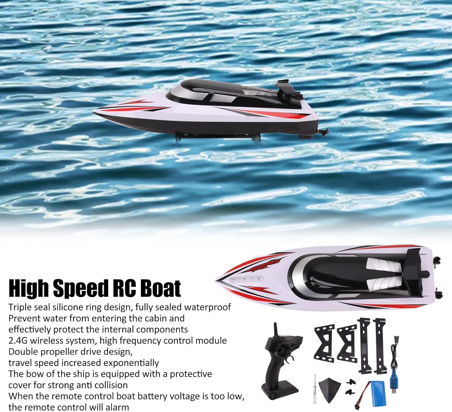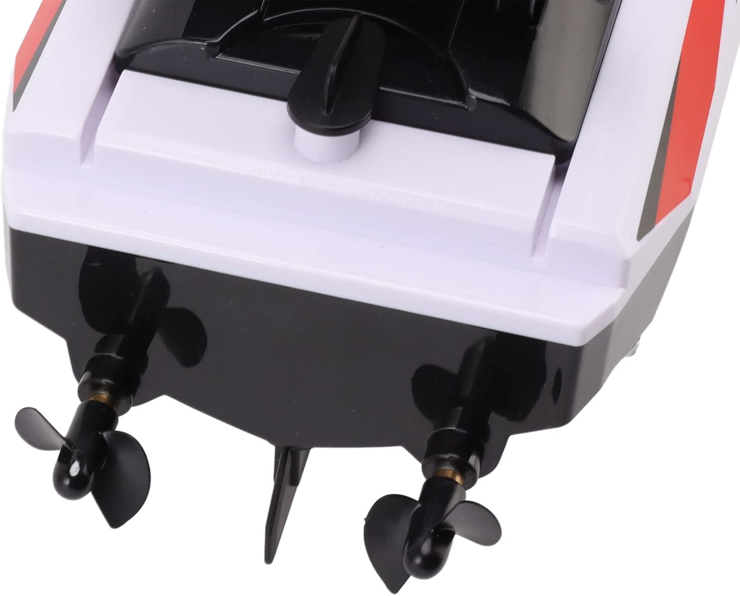 Sigillato e impermeabile: l'interno o scafo è progettato con tripli anelli di tenuta in silicone per impedire all'acqua di entrare nella cabina e garantire efficacemente la sicurezza dei componenti interni. Sicuro da giocare: l' è dotato di una copertura protettiva, resistente e a prova di collisione, e l' smetterà automaticamente di funzionare quando lascia l'acqua con l'induzione di spegnimento. Controllo wireless 2.4G: la barca telecomandata adotta un wireless 2.4G e un modulo di controllo ad alta frequenza, la distanza massima può arrivare fino a circa 80 metri, adatto a più di una persona per competere sullo stesso campo. Doppia trasmissione a : la barca telecomandata adotta un design a doppia , la velocità di guida viene moltiplicata e la virata è più e il senso di controllo è pieno. Allarme batteria scarica: quando la tensione a batteria a barca RC è troppo bassa, il telecomando effettuerà un'anteprima 'allarme per invitare il motoscafo a tornare in tempo.