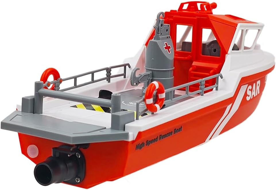 Emozioni ad alta velocità di 8 km/h: vivi emozionanti avventure acquatiche con una velocità massima di 8 km/h. Il sistema di controllo remoto a 2,4 GHz offre un funzionamento fluido e senza interferenze con una portata fino a 50 metri, perfetto per correre più barche contemporaneamente. Potente elica e controllo flessibile del timone: dotato di una robusta elica e timone regolabile per una navigazione precisa. Correggi senza sforzo le deviazioni del percorso e goditi uno sterzo reattivo per gli utenti di tutti i livelli di abilità. Sistema motore raffreddato ad acqua: il meccanismo integrato di raffreddamento ad acqua mantiene il motore a una temperatura ottimale durante il funzionamento, riducendo l'usura e prolungando la durata del motore per prestazioni più affidabili nel tempo. Carena impermeabile sigillata con protezione dagli impatti: il design completamente sigillato con più punti di bloccaggio impedisce l'ingresso di acqua. Un paraurti anteriore rinforzato assorbe le collisioni e la funzione autoregolante aiuta a ripristinare la barca se capovolta, garantendo un gioco ininterrotto. Divertimento all'aperto e pronto per regali: perfetta per laghi, piscine e fiumi calmi, questa barca a reazione RC offre giochi d'acqua emozionanti per i fan del RC. Una scelta regalo eccezionale per fan di RC, hobbisti o avventurieri all'aperto.