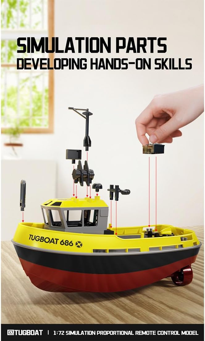 Alta velocità e lunga autonomia: Caratterizzata da un design di propulsione a turbogetto, questa barca RC raggiunge gli 8 km/h per un emozionante gioco ad alta velocità. Il sistema di controllo remoto ad alta frequenza da 2,4 GHz offre un segnale stabile con portata fino a 50 metri. Più barche possono funzionare insieme senza interferenze Impermeabile e a prova di urto: una copertura impermeabile completamente sigillata con molteplici chiusure a torsione mantiene l'acqua fuori in modo affidabile. Il kit di protezione contro le collisioni anteriori delle barche riduce i danni da urti e aiuta a prevenire l'ingresso dell'acqua. Se capovolta, la barca si resetta ruotando il timone e accelerando Forte potenza e controllo: una forte elica fornisce una grande spinta. Il timone flessibile corregge facilmente la direzione. È inoltre possibile regolare la velocità con un solo pulsante, rendendolo adatto a utenti di diversi livelli di abilità e migliorando la vera esperienza di guida Allerta intelligente e lunga durata: questo rimorchiatore elettrico è dotato di batteria scarica e allarmi per un funzionamento più sicuro. La batteria al litio ad alta capacità è sostituibile, fornendo una riproduzione duratura e una facile ricarica USB. Il raffreddamento ad acqua protegge il motore e ne prolunga la durata Regalo perfetto all'esterno: un'eccellente barca telecomandata per avventure acquatiche all'aperto e interazione familiare. Un ottimo regalo per la famiglia o gli amici per Natale e altre occasioni festive