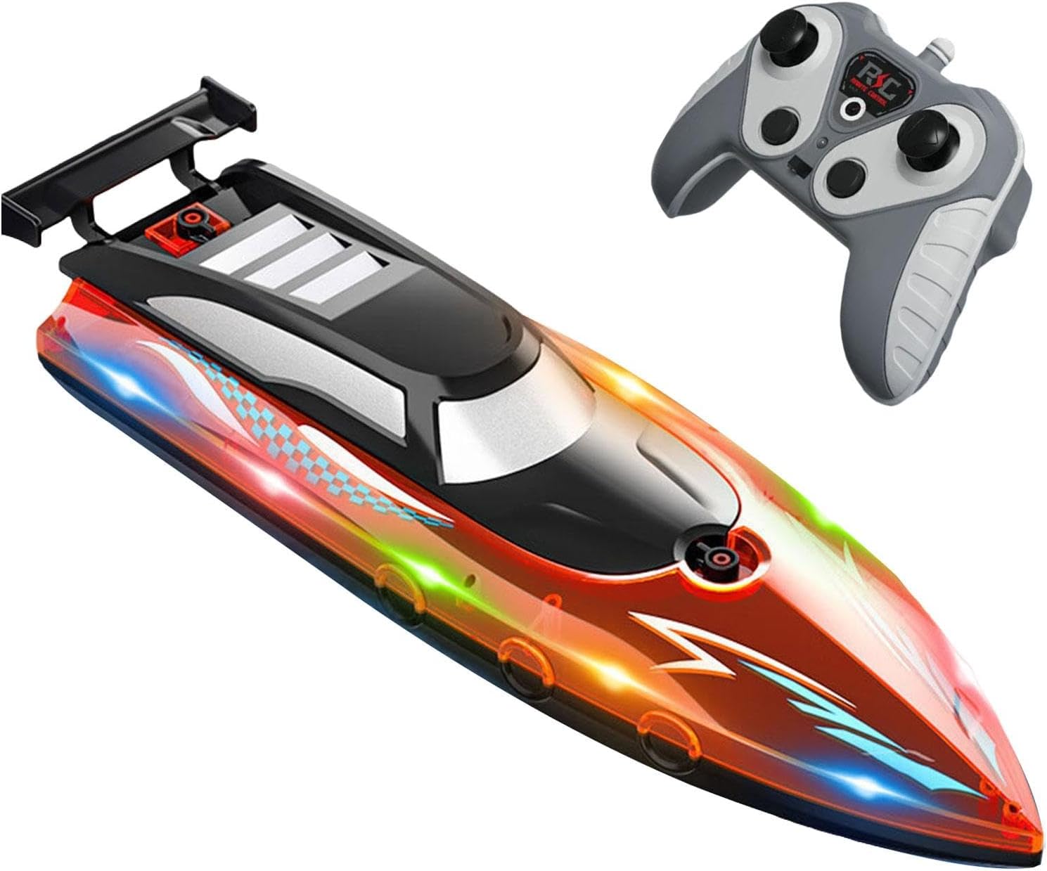 【Navigazione notturna migliorata】: le luci di navigazione integrate nel motoscafo illuminano la tua navigazione in acqua, consentendoti di navigare facilmente di notte, aggiungendo funzionalità e visivo alle tue avventure in barca a vela 【Dimensioni del prodotto】: Barca telecomandata 32,5 cm x 9,5 cm x 8 cm / 12,8 pollici x 3,74 pollici x 3,15 pollici 【Alte prestazioni】: barca RC, alta, anti-interferenza 2.4G; velocità 50 km/h; resistenza, circa 30 minuti; distanza del telecomando, circa 80 metri 【Struttura impermeabile sigillata】: modello giocattolo acquatico per bambini è realizzata in PP di qualità e ha una struttura impermeabile completamente sigillata per impedire l'ingresso di acqua e proteggere tutti i componenti interni; il design con blocco a torsione singola protegge efficacemente lo scafo dall'ingresso di acqua 【Potente a 】: barca telecomandata con potenti doppi motori, potenza elevata, stabilità, ti consente di provare l'emozione della navigazione ad alta velocità