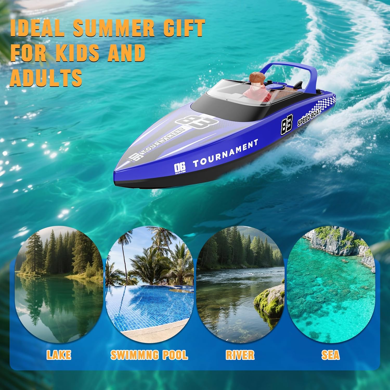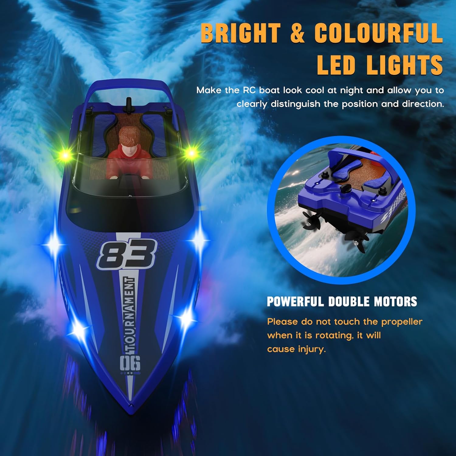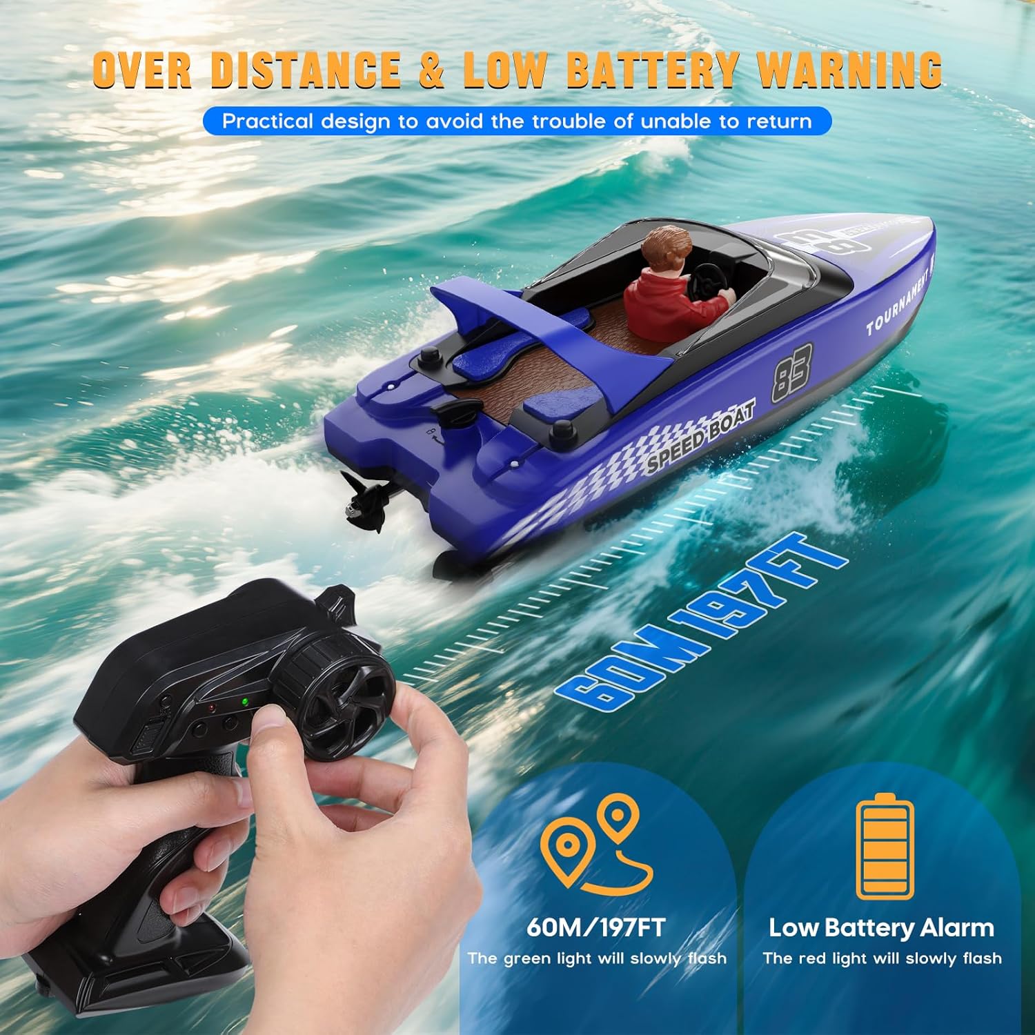 【Barca RC ad Alta Velocità con Luci LED】La nostra barca radiocomandata per bambini e adulti è dotata di eliche magnetiche raffreddate ad acqua, che raggiungono velocità fino a 15 km/h. I bordi della barca sono equipaggiati con luci colorate e luminose, rendendola spettacolare di notte e permettendoti di distinguere chiaramente posizione e direzione. 【Allarme di Distanza e Batteria Scarica】La barca è alimentata da una batteria ricaricabile da 1200mAh. La luce rossa del controller lampeggia lentamente quando la batteria è scarica. La distanza di controllo è di circa 60 metri; se superata, la luce verde lampeggia per evitare problemi di ritorno. Nota: il telecomando richiede 4 batterie AA (non incluse!!). 【Controllo Proporzionale Completo】Il telecomando 2.4GHz offre un'operazione precisa e sensibile, permettendoti di controllare facilmente velocità e direzione (avanti/indietro/destra/sinistra). Mantieni la barca RC nel raggio d'azione e goditi gare multiple simultaneamente, assicurando un divertimento indimenticabile. 【Protezione Sensibile all'Acqua】Questa barca da corsa per piscine è realizzata in ABS di alta qualità, con una copertura impermeabile che mantiene asciutto il vano batteria. La barca RC avvia il motore solo a contatto con l'acqua, rendendola più sicura per i bambini. 【Regalo Ideale per l'Estate】La nostra barca RC veloce è perfetta per piscine, laghi, fiumi o mare. I bambini possono gareggiare con amici o genitori, migliorando le abilità sociali e divertendosi. Un regalo fantastico per Natale, compleanni, Pasqua e altre festività, adatto a adulti e bambini sopra i 14 anni.