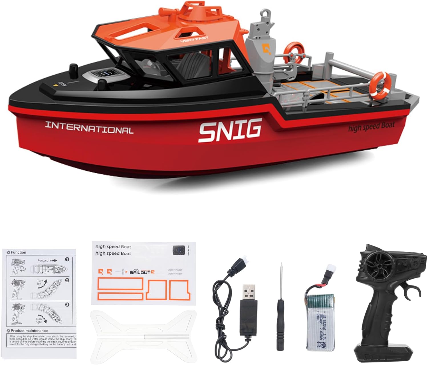 [PRESTAZIONI VELOCI] Goditi velocità entusiasmanti di oltre 10 km/h con il potente motore brushless 1503, offrendo un'esperienza di corsa emozionante per tutte le età. [TEMPO DI GIOCO PIÙ LUNGO] Il divertimento ininterrotto ti aspetta con un tempo di funzionamento fino a 18 minuti con la batteria al litio ricaricabile da 3,7 V 550 mAh, garantendo avventure acquatiche più lunghe. [FACILE DA USARE] Naviga senza sforzo su questa mini barca con il telecomando 2.4G, consentendo una navigazione in tutte le direzioni, perfetta sia per i principianti che per gli utenti esperti. [LA SICUREZZA PRIMA] Rimani informato con il di avviso di batteria scarica. Garantisce un gioco sicuro e continuo avvisandoti di caricare tempestivamente la barca, offrendo un'esperienza senza preoccupazioni. [OTTIMA IDEA ] Sorprendi i tuoi cari con questa scialuppa di salvataggio telecomandata, un ideale per compleanni, vacanze o occasioni speciali che promuove il gioco all'aperto e le capacità di coordinazione.