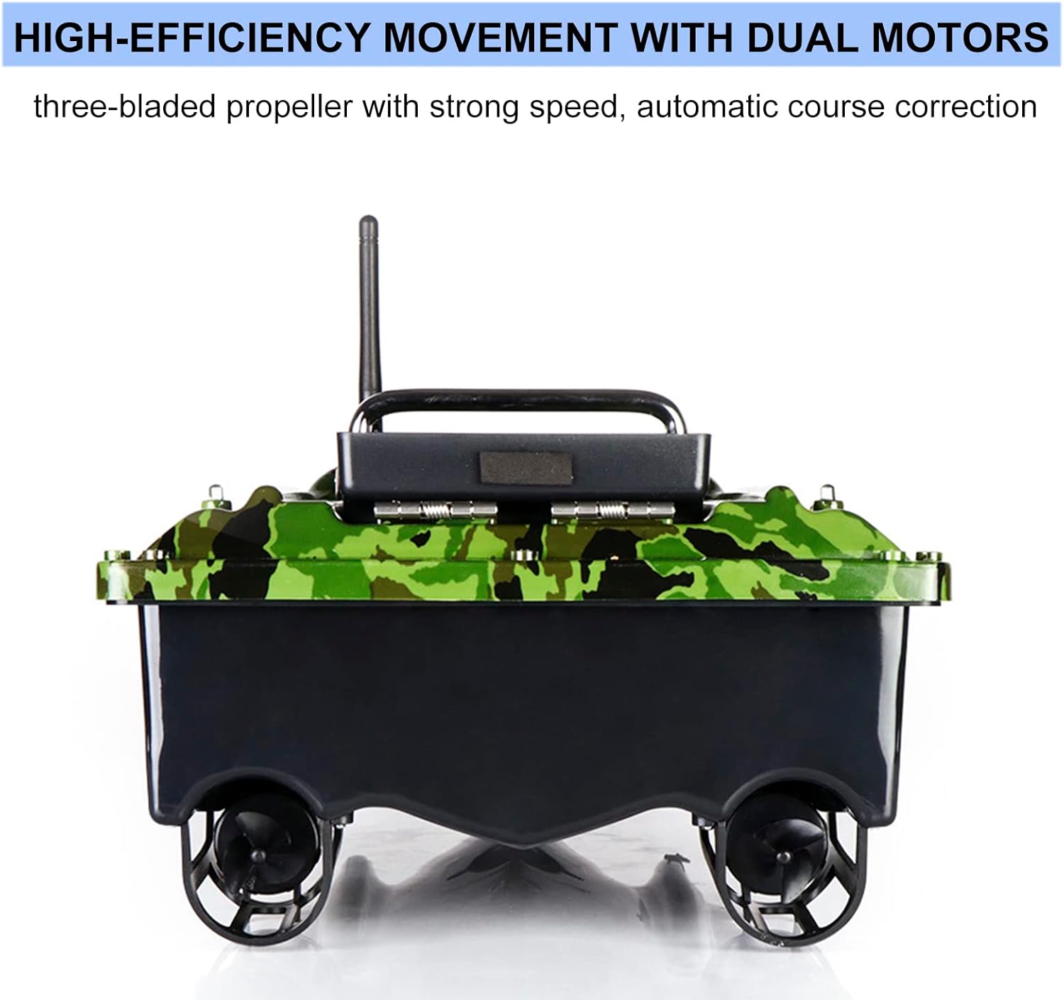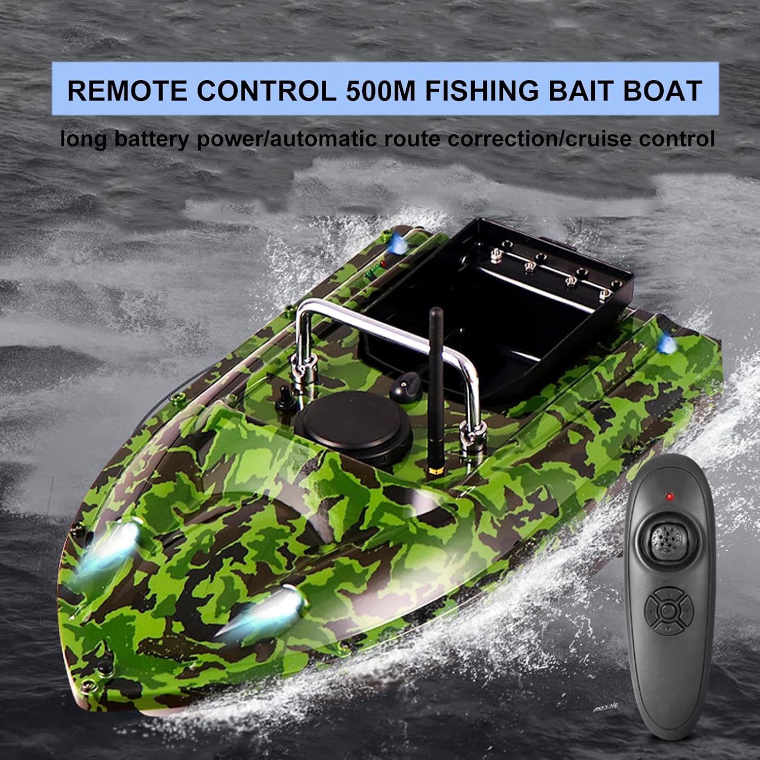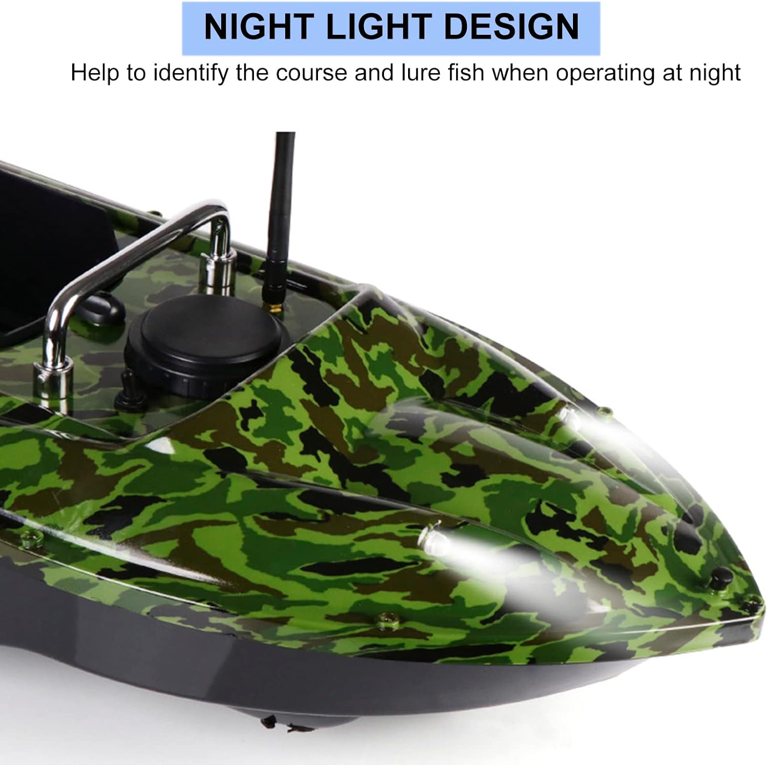 [Telecomando 500M] - Telecomando wireless ad alta frequenza senza interferenze, raggio di controllo di 500 metri con un telecomando di facile controllo. Crociera a velocità fissa, mani libere. [Tempo di lavoro lungo] -- La batteria ad alta capacità da 7,4 V 5200 mAh/12000 mAh offre una lunga durata della batteria, circa 2 ore/3-4 ore di uso costante. risparmia tempo di ricarica, l'indicatore sulla barca mostra chiaramente lo stato del bilanciamento della potenza. [Design impermeabile] - Il corpo principale dello scafo adotta materiale di ingegneria ABS, che ha una resistenza e una resistenza all'usura superiori, cabina senza cuciture, completamente chiusa e impermeabile. [Doppio motore, pagaia a tre foglie] - La barca esca per la pesca alla carpa presenta un potente design a doppio motore che fornisce potenza sufficiente ed eliche a tre pale per una maggiore spinta e trasferimento dell'acqua nell'acqua per una migliore velocità di guida. [LED Super Searchlight] - La barca con esca da pesca adotta il design della luce notturna, conveniente per l'annidamento notturno. Le luci bicolore anteriori e posteriori possono confermare chiaramente la posizione della nave a lunga distanza.