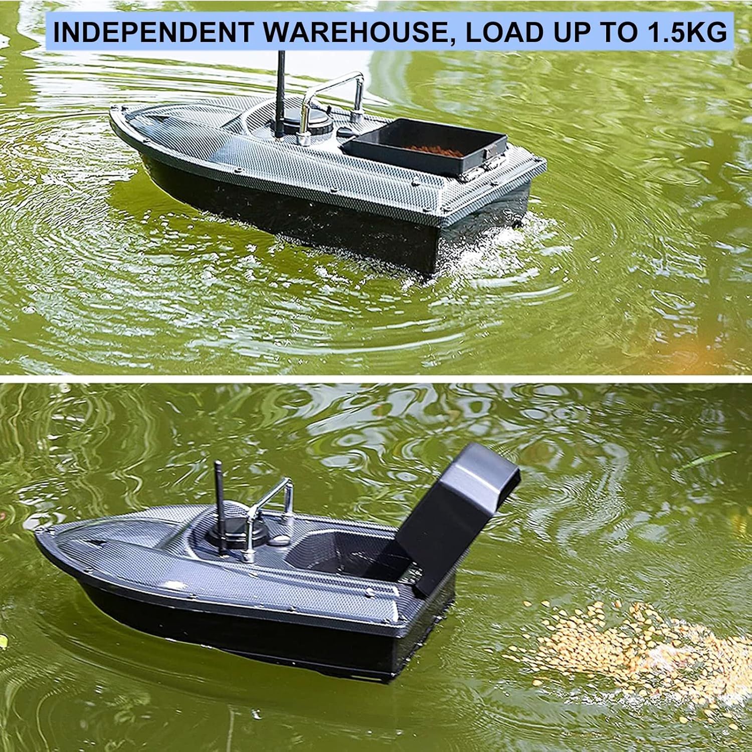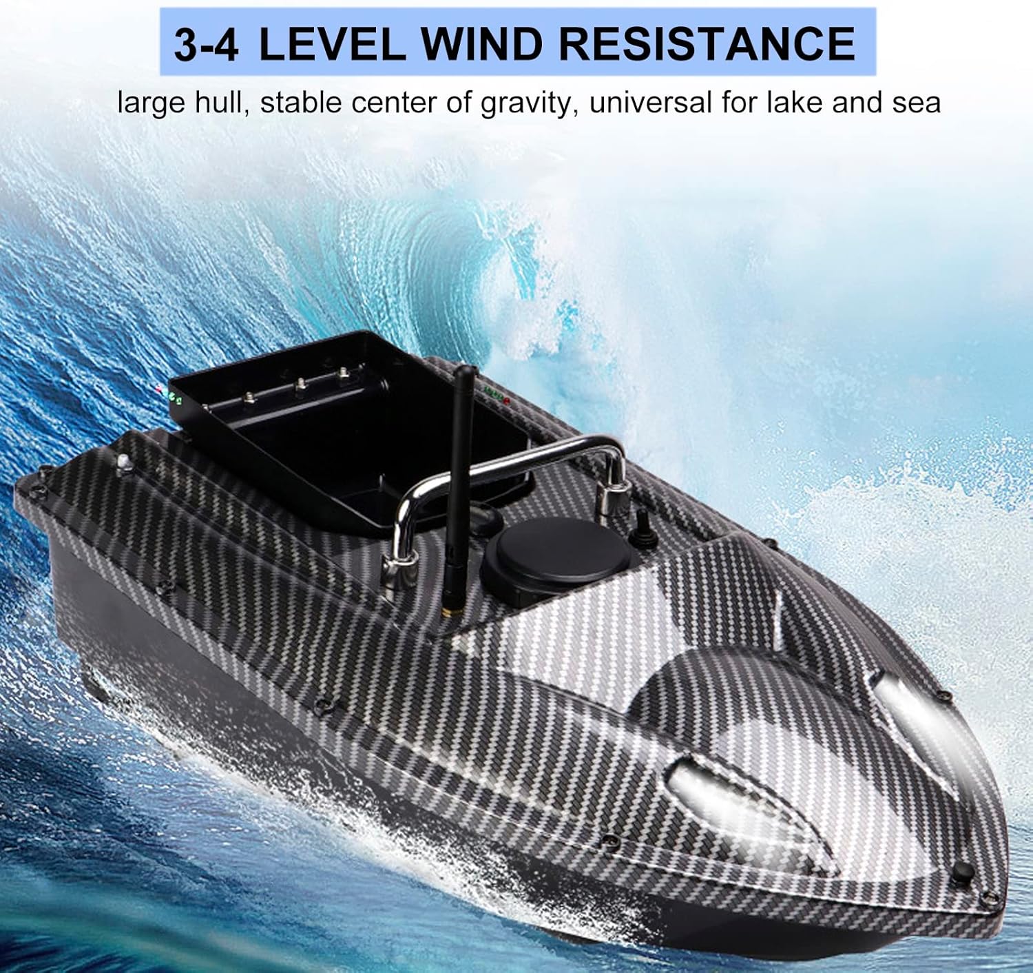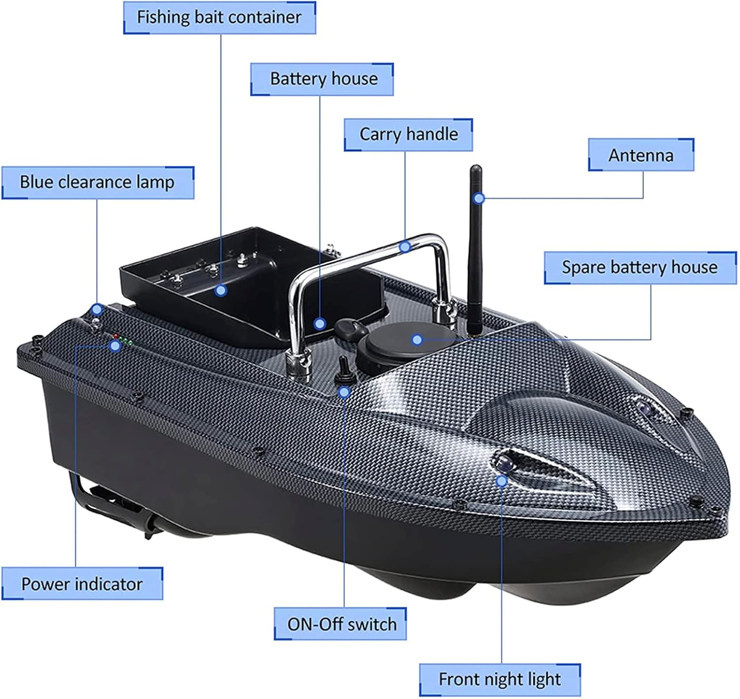 [Telecomando 500M] - Telecomando wireless ad alta frequenza senza interferenze, raggio di controllo di 500 metri con un telecomando di facile controllo. Crociera a velocità fissa, mani libere. [Tempo di lavoro lungo] -- La batteria ad alta capacità da 7,4 V 5200 mAh/12000 mAh offre una lunga durata della batteria, circa 2 ore/3-4 ore di uso costante. risparmia tempo di ricarica, l'indicatore sulla barca mostra chiaramente lo stato del bilanciamento della potenza. [Design impermeabile] - Il corpo principale dello scafo adotta materiale di ingegneria ABS, che ha una resistenza e una resistenza all'usura superiori, cabina senza cuciture, completamente chiusa e impermeabile. [Doppio motore, pagaia a tre foglie] - La barca esca per la pesca alla carpa presenta un potente design a doppio motore che fornisce potenza sufficiente ed eliche a tre pale per una maggiore spinta e trasferimento dell'acqua nell'acqua per una migliore velocità di guida. [LED Super Searchlight] - La barca con esca da pesca adotta il design della luce notturna, conveniente per l'annidamento notturno. Le luci bicolore anteriori e posteriori possono confermare chiaramente la posizione della nave a lunga distanza.