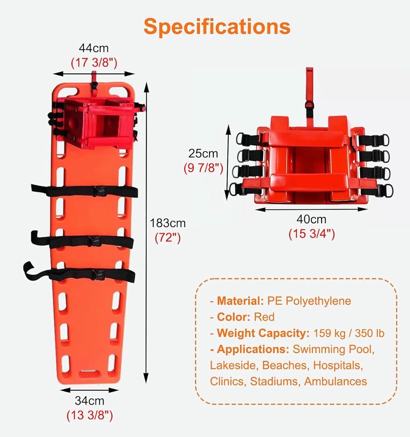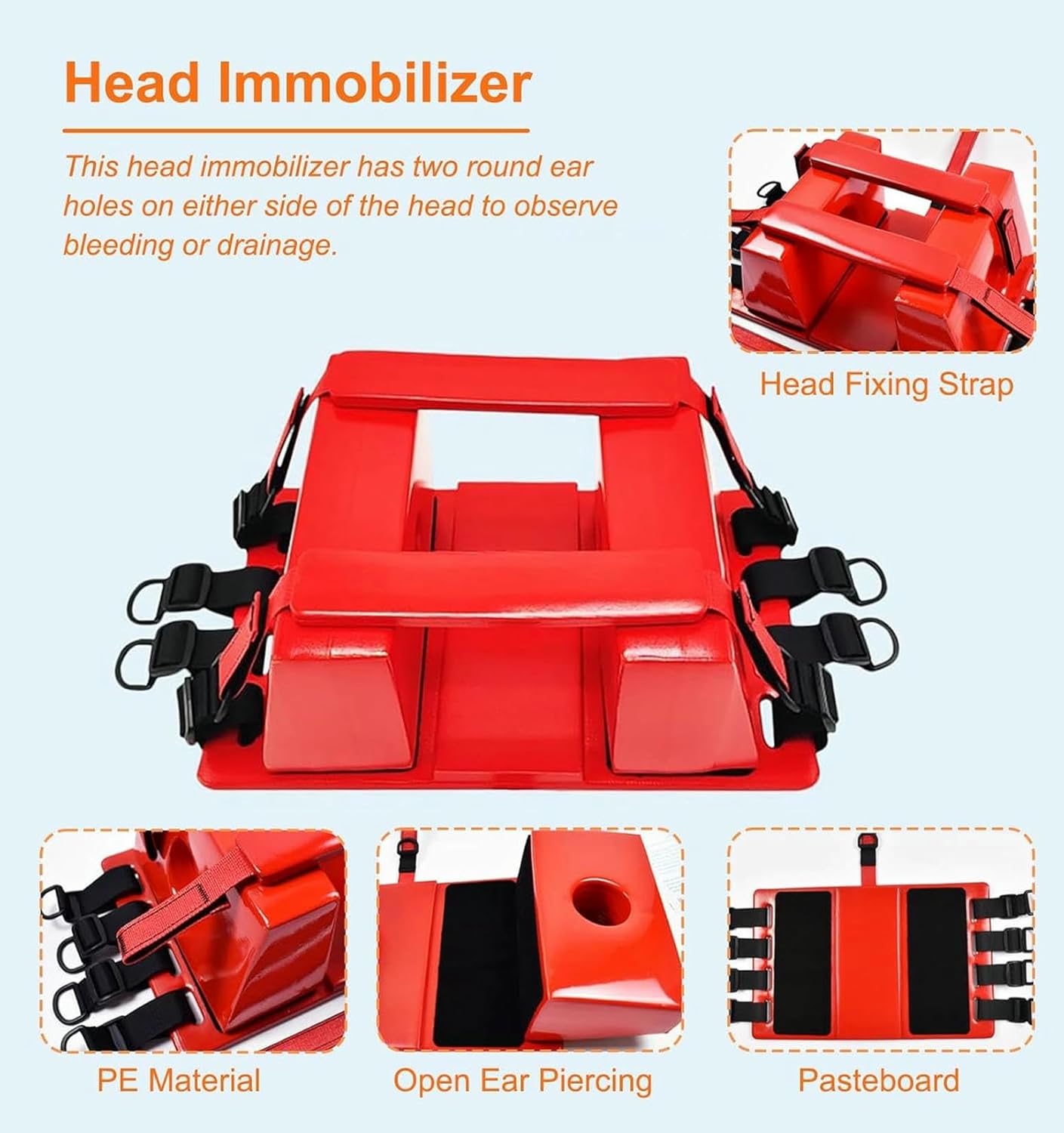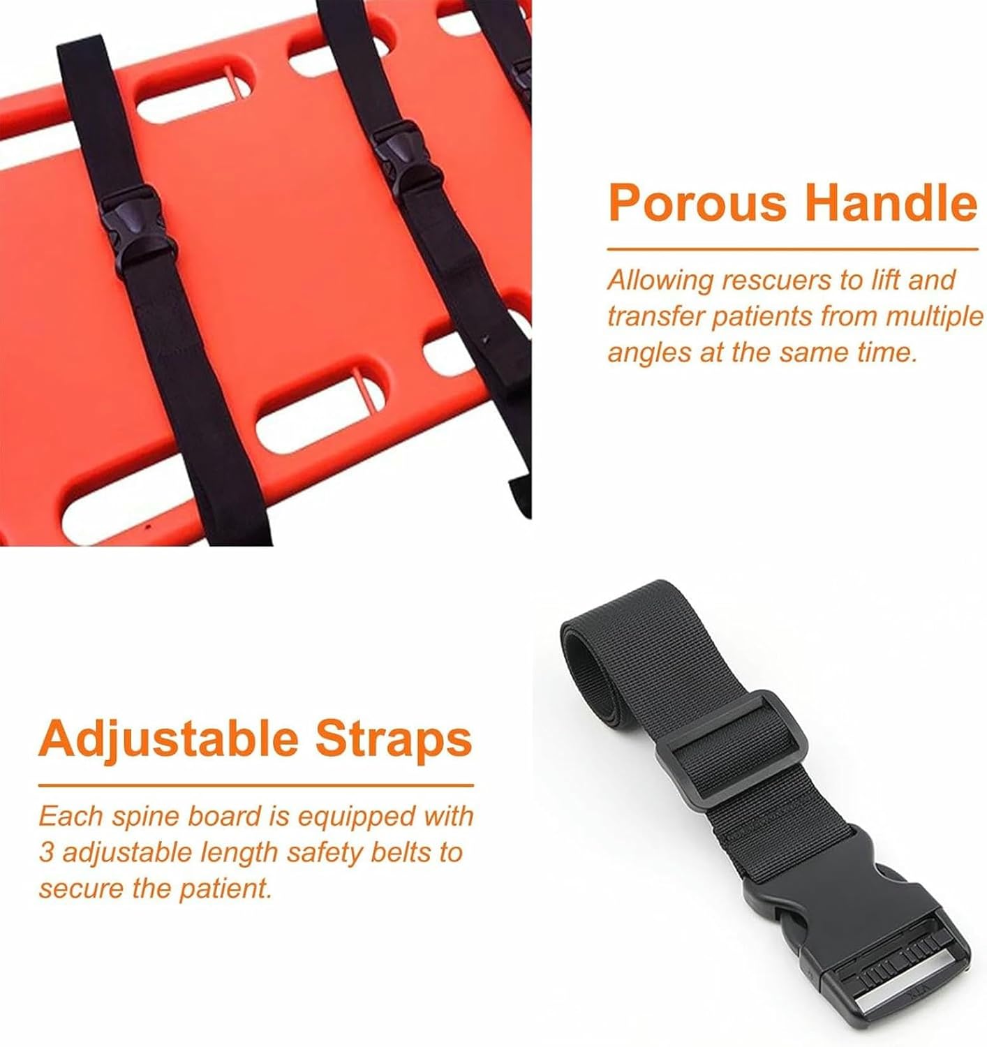 (Scheda di soccorso di emergenza per l'acqua): questa barella galleggiante della scheda della colonna vertebrale è una soluzione di trasporto portatile per il salvataggio dell'acqua.Permette ai bagnini di trasferire i feriti più facilmente e rapidamente e migliora il tasso di salvataggio di successo (Essential Search & Rescue Equipment: il tabellone della barella di emergenza può impedire lo stress della schiena del personale durante il trasferimento dei pazienti senza mettere in stress alle lesioni del paziente. Facile da eseguire la RCP, adotta un design senza metalli e può essere radioso (PE Board salvavita): realizzato per il materiale impermeabile PE ad alta resistenza, senza necessità di girare, modellare un pezzo, non facile da invecchiare e di rottura, può essere utilizzato a lungo.Può sopportare fino a 350 libbre (159 kg) di peso.Nessun odore, facile da pulire (Design ergonomico): ci sono aperture di manico distribuite simmetricamente intorno, che possono essere trasportate, trasportate e sollevate da più persone contemporaneamente.Ergonomico, fornisce sufficienti esigenze di fissazione della testa.Questo immobilizzatore della testa ha due fori auricolari rotondi su entrambi i lati della testa per osservare il sanguinamento o il drenaggio (Ampiamente utilizzato): questa barella di immobilizzazione del tabellone è progettata per il salvataggio di emergenza e può essere utilizzata in una varietà di scenari professionali, come ambulanze, ospedali, cliniche, giochi sportivi, palestre e piscine.Per pompieri, bagnini, primi soccorritori, ecc.