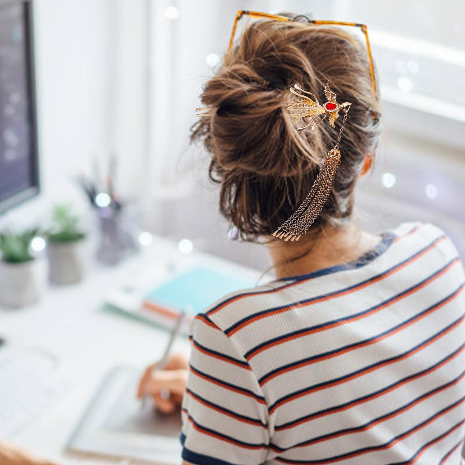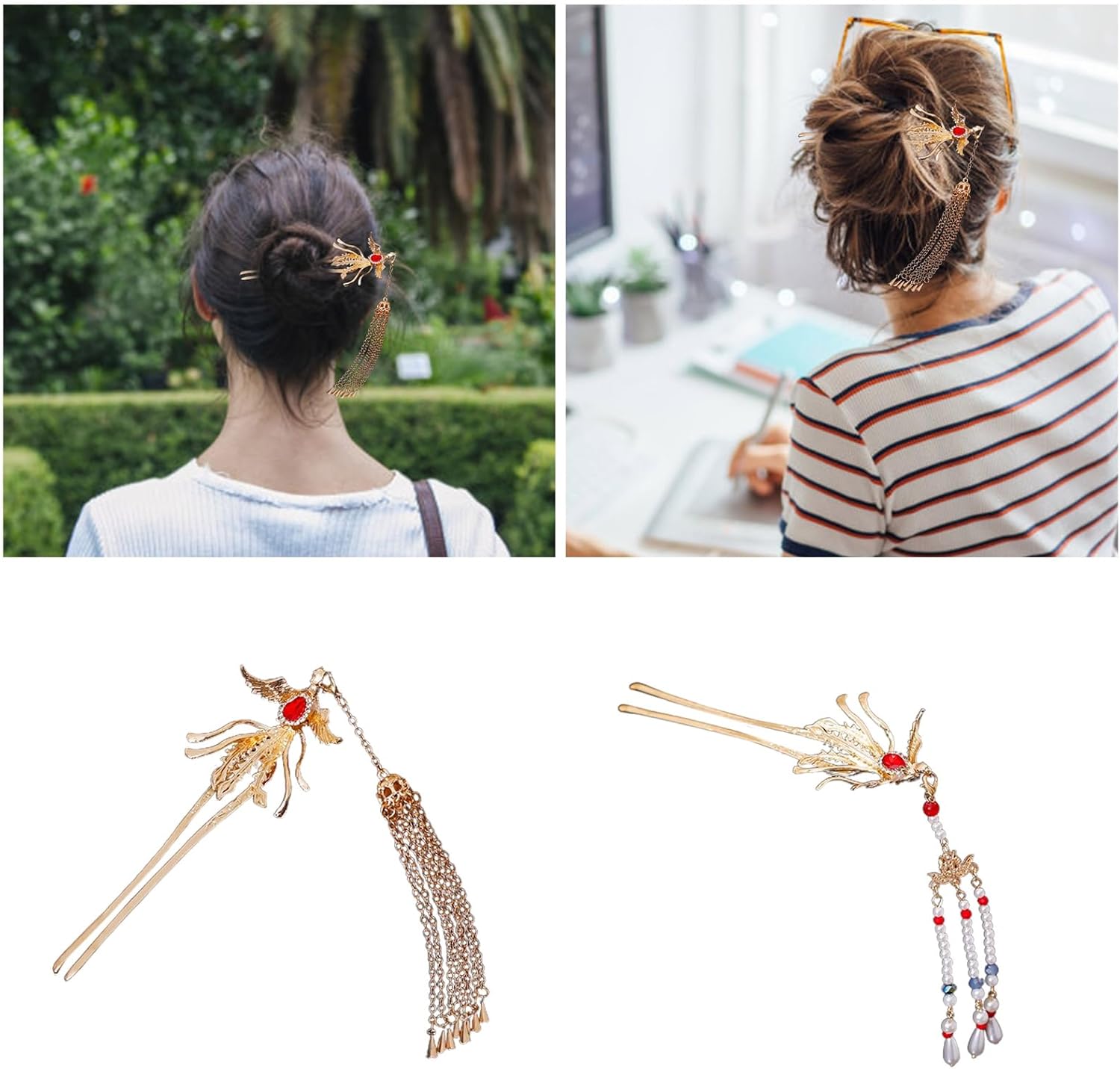 Barrette per capelli tradizionali cinesi Bastoncini per capelli Phoenix per ragazze Accessori per capelli cosplay Caratteristiche: Cosplay una bellezza cinese con questo bastoncino per capelli unico! Capelli folti con perline e nappe. Realizzato in resina, questo bastoncino per capelli sarà un pon pon delicato e svolazzante. Per le donne che amano aggiungere fascino al proprio outfit. Per matrimoni, feste, cosplay e semplicemente per completare il tuo look quotidiano. Segna facilmente la tua acconciatura con questo bellissimo bastoncino per capelli. Specifiche: Componente: lega Tipo: 2 opzioni Lunghezza asta per capelli: ca. 15 cm (senza nappe) Quantità: 1 pezzo Confezione: 1 x bastoncino per capelli. Nota: 1. Si prega di consentire un errore di 1-2 cm dovuto alla misurazione manuale. Tieni presente che non devi preoccuparti del tuo ordine. 2. Il colore dell'articolo può variare leggermente dalle immagini a seconda dello schermo del computer e delle impostazioni di luminosità.
