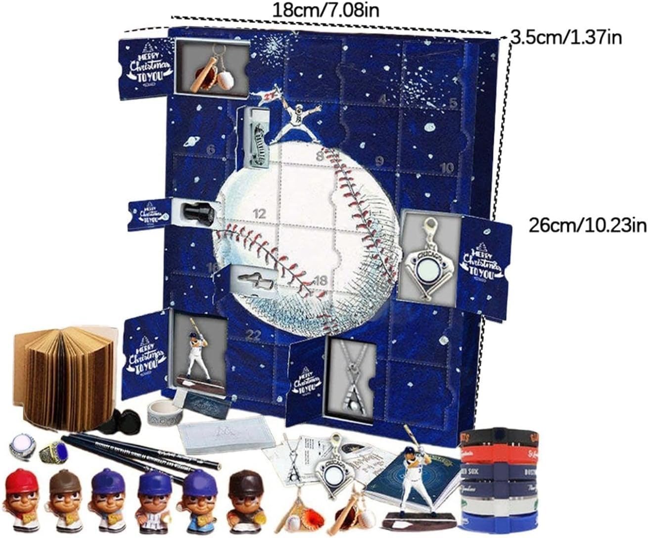Conto alla rovescia festivo del baseball: festeggia le vacanze con un calendario dell'avvento del baseball di 24 giorni in cui ogni porta nasconde una sorpresa a tema baseball. È un modo divertente ed emozionante per i fan di tutte le età di godersi il conto alla rovescia fino al Natale mentre esprimono il loro amore per lo sport. Perfetto per gli appassionati di baseball: questo calendario dell'Avvento è progettato per coloro che vivono e respirano il baseball. Unisce l'emozione del gioco con le tradizioni natalizie. Ogni pezzo aggiunge un tocco di spirito di squadra alle tue celebrazioni stagionali. Espositore decorativo per le festività: questo calendario è più di un semplice conto alla rovescia, ma funge anche da decorazione festiva. Posizionalo su una mensola, una libreria o un tavolo per illuminare la tua casa con il fascino natalizio ispirato al baseball per tutta la stagione. Sorprese da collezione di alta qualità: ogni giorno rivela un oggetto da collezione dettagliato e duraturo, dalle figurine in miniatura ai cimeli a tema. Questi cimeli sono progettati per durare, rendendoli perfetti da esporre o per iniziare una collezione personale. Esperienza di vacanza indimenticabile: in famiglia o da soli, questo calendario dell'Avvento crea ricordi indelebili. Le sorprese quotidiane rendono emozionante ogni mattina di dicembre e mantengono vivo lo spirito natalizio fino al giorno di Natale
