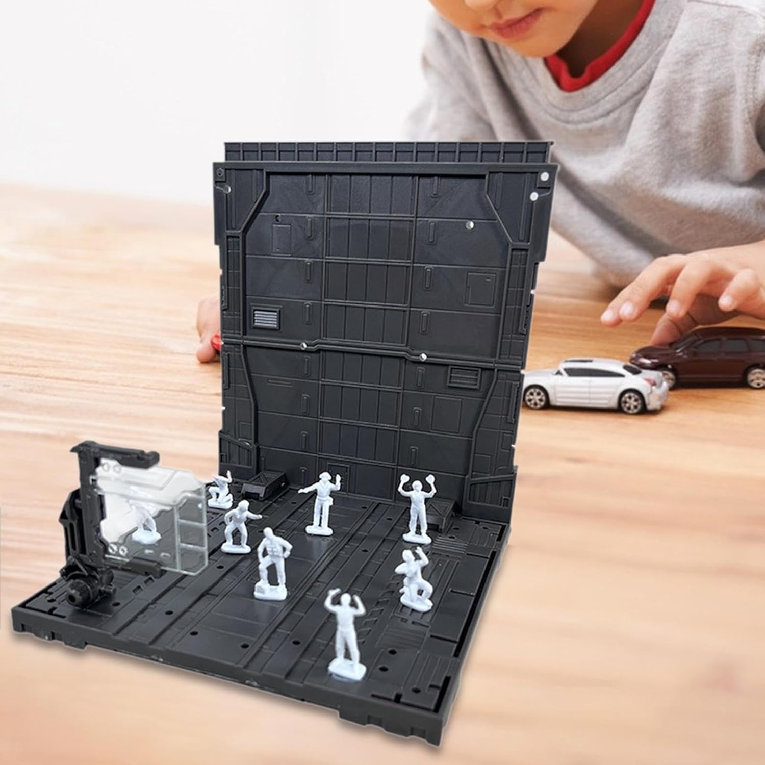 【Adatto a tutti】: la base di esposizione per action figure è adatta per modellini di giocattoli, bambole d'azione, action figure, personaggi di gioco, robot o altri accessori da collezione. 【Esposizione di sfondo modello】: Vari accessori, combinazione fai da te, esperienza realistica, base di battaglia in garage 【Qualità Premium】: Realizzato in robusto materiale PP, dettagli chiari, vera tavola, mostra le tue figure con queste scene di sfondo. 【Migliora il valore della collezione】: diverse scene e layout in base alle tue esigenze con questa base di sfondo 【Dimensioni】: 5,91 pollici x 5,91 pollici x 6,69 pollici, necessita di assemblaggio, altissima giocabilità, ricco ed elegante