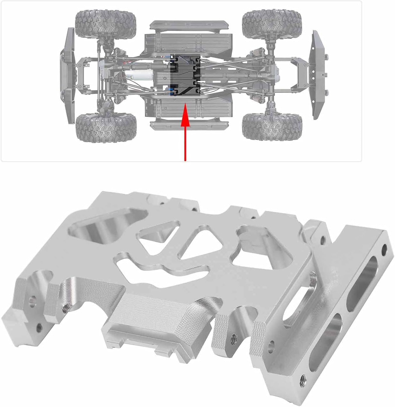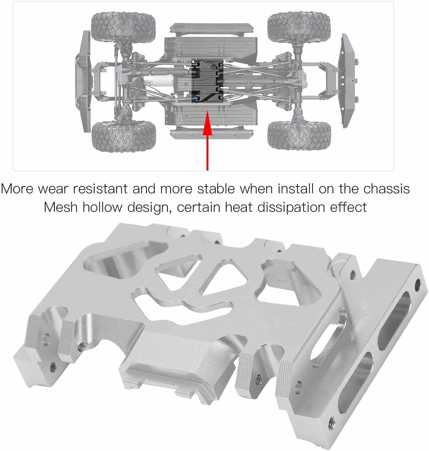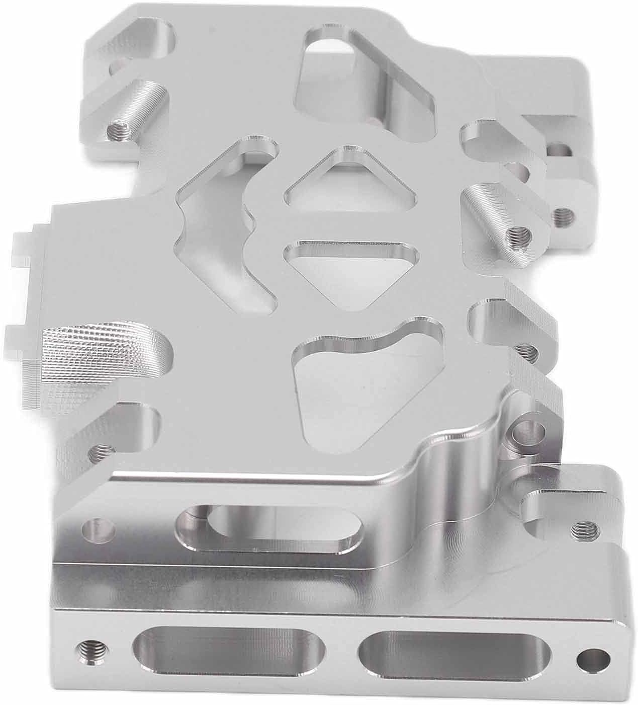 Lunga durata: Realizzato in materiale in lega di alluminio di alta qualità, può essere garantita una lunga durata Facile da installare: Dotato di 8 viti, facile da installare, sufficiente da sostituire, durevole per lungo tempo Resistente all'usura e stabile: più usura e strappi e più stabile quando il gruppo cambio è installato sul telaio Effetto di dissipazione del calore: Adotta un design cavo a rete con un certo effetto di dissipazione del calore e un aspetto più bello Buona sostituzione: Il prodotto serve per sostituire TRAXXAS TRX4 Adatto per parti cingolate 1/10 RC, molto pratico