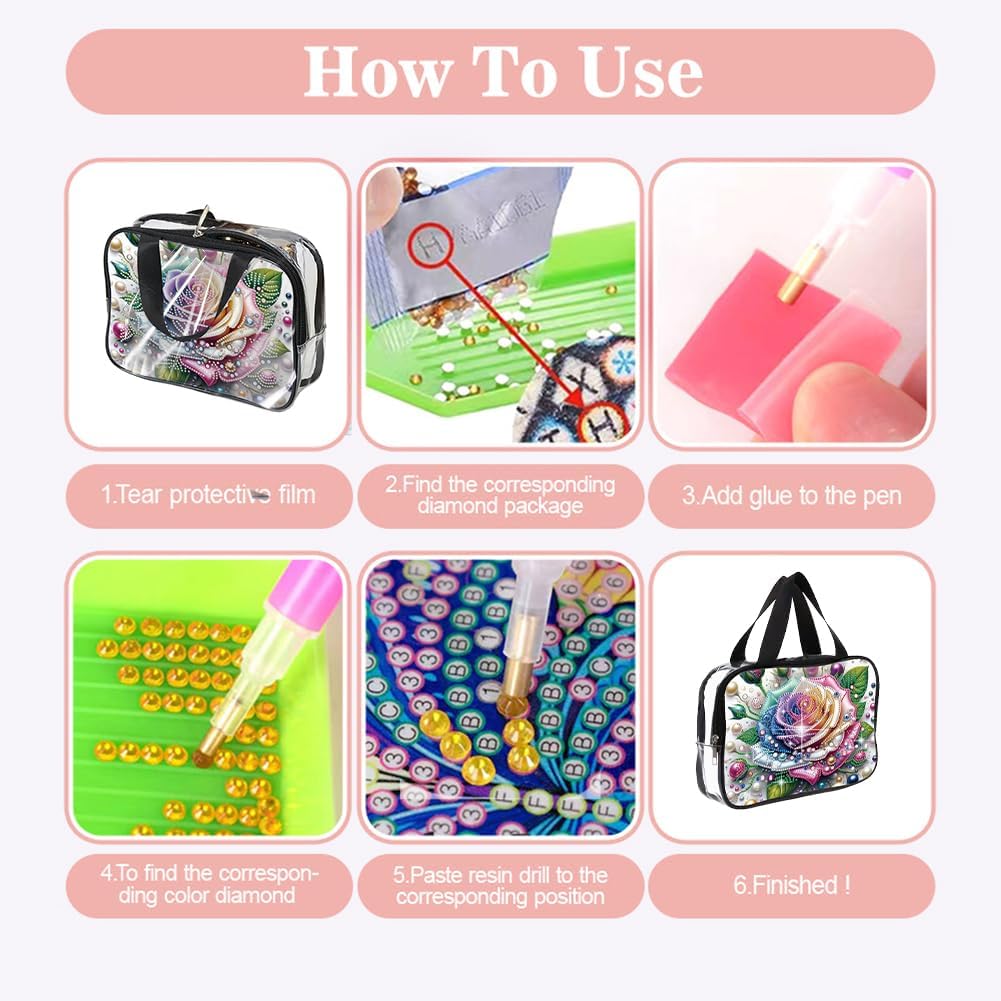 Innovazione fai -da -te: esprimi la tua creatività e artigianato un accessorio unico con la borsa per trucco per diamanti fai -da -te, unendo il tocco personale con una finitura di trucco di rinestina di bling alla moda. Decorazione elegante: elevare il fascino estetico migliorando le bellissime illustrazioni sulla borsa creativa di strass con dettagli diamantato per una svolta artistica. Design trasparente: con il suo materiale trasparente, la borsa cosmetica di strass cristallina consente una chiara visibilità dei contenuti, semplificando il recupero degli oggetti. Convenienza compatta: il Dot Storage Pack offre ampio spazio per i cosmetici e può essere nascosto senza sforzo in una borsa a causa delle sue dimensioni portatili. Costruzione solida: la sacca in PVC di pittura a diamante 5D vanta materiali resistenti che promettono una protezione duratura per i tuoi beni, combinando lo stile con la funzionalità.