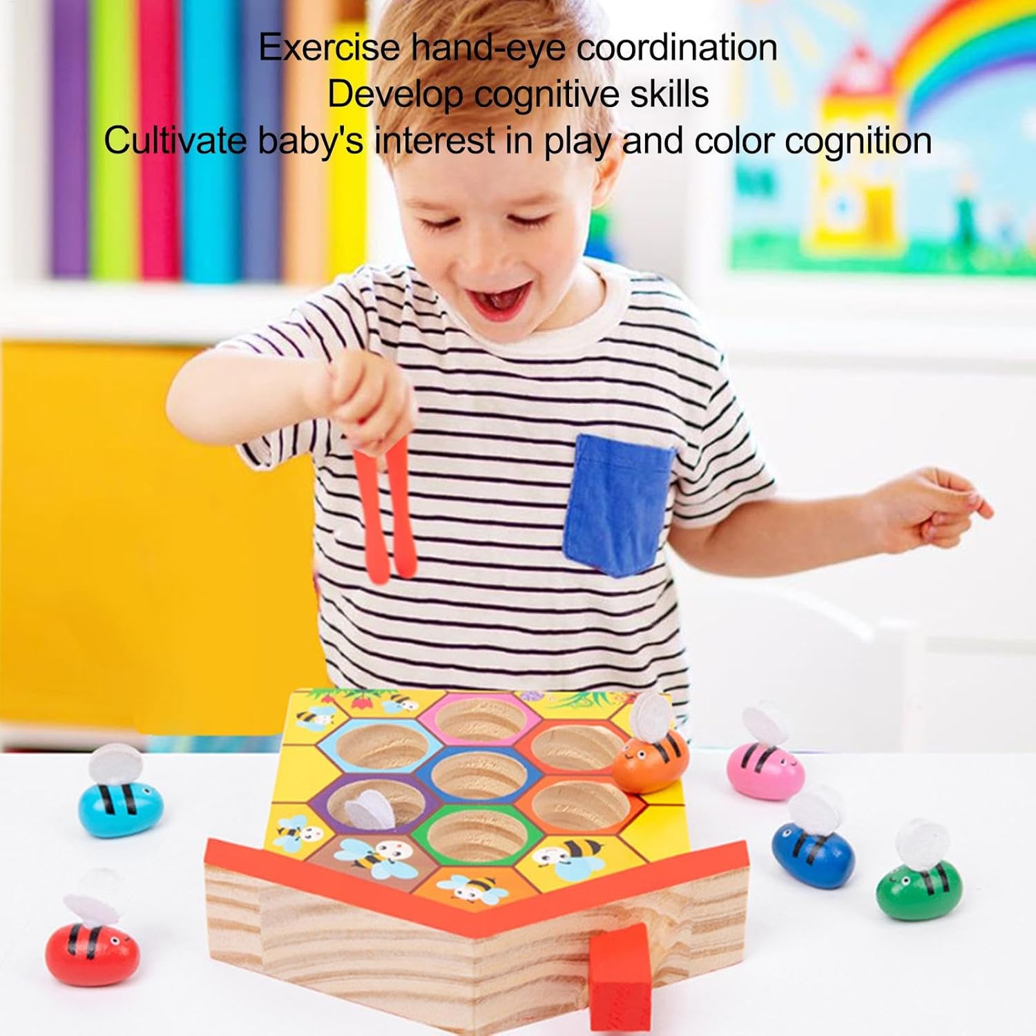 Promuovi lo sviluppo: questo giocattolo di apprendimento in età prescolare dovrebbe suscitare interesse e curiosità nei bambini se si cattura le colorate con le staffe e le assegnano all'alveare corrispondente. È un grande giocattolo che promuove le capacità motorie. Buone abilità motorie: questo gioco di morsetti è stato sviluppato per migliorare la capacità di coordinamento degli occhi per bambini quando si riporta le stesse negli stessi alveari con le pinze di legno. Inoltre, sono incoraggiate le capacità motorie e il rilevamento del colore. Sviluppo pedagogico: consentendo ai bambini di assegnare, selezionare e contando le colorate, questo gioco costruisce abilità matematiche di base e stesso sviluppa abilità per il riconoscimento e la classificazione del colore. Child -Safe di gioco: proteggi i tuoi bambini con il nostro gioco di alveare per di morsetto. I bordi arrotondati e il legno stabile riducono il rischio di lesioni. Inoltre, le e le parentesi innocue assicurano che possano rilassarsi mentre i loro figli si divertono. Ottieni un giocattolo che ti piacerà: e ti fiderai di te. Buoni regali per bambini: The Flamp Bee Hive Game è un regalo di compleanno, Natale o del Ringraziamento per i bambini di 36 mesi. Promuove lo sviluppo cognitivo, le capacità motorie e il riconoscimento del colore e garantisce divertimento educativo durante il gioco.