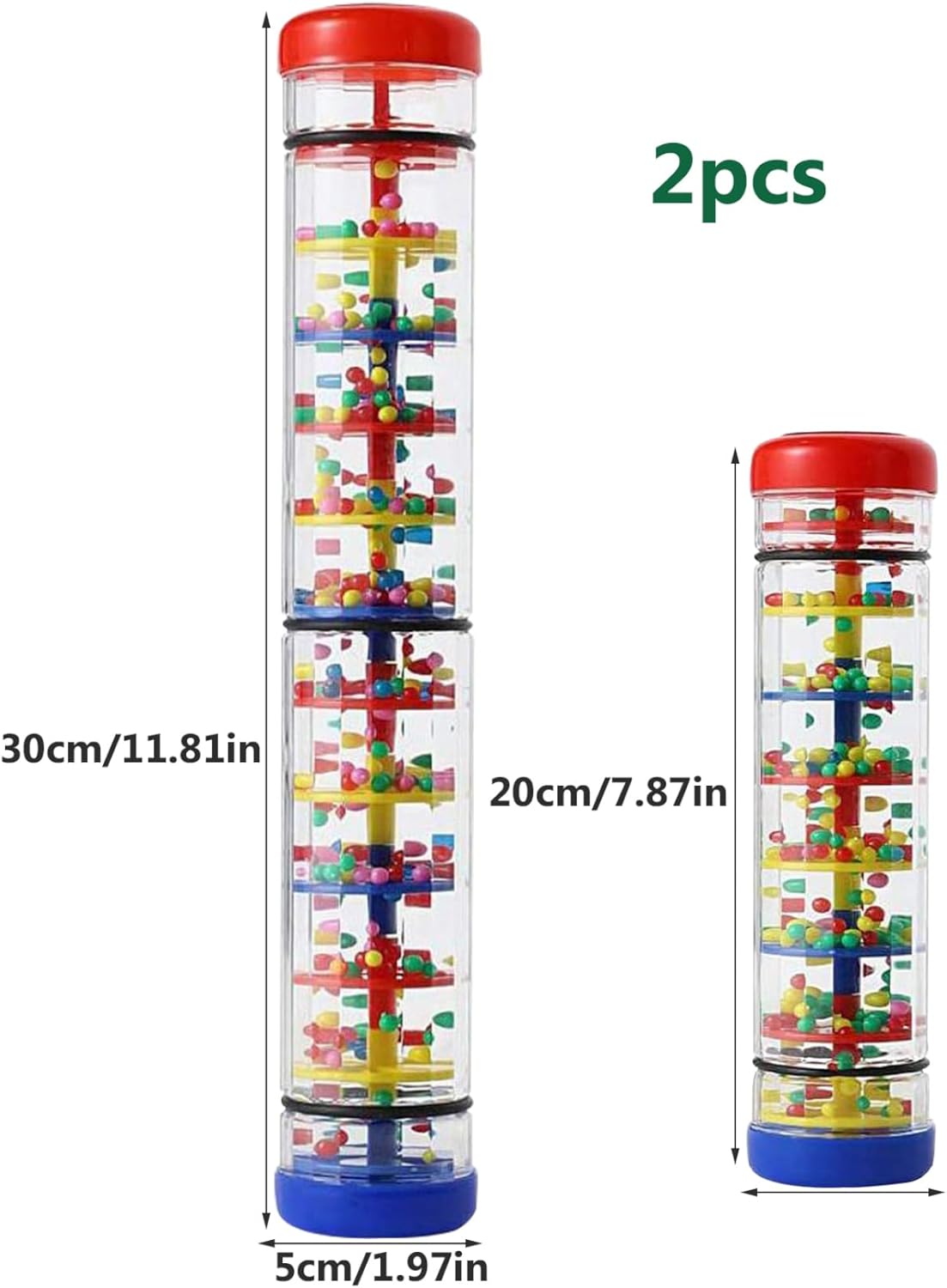 Pregevole fattura: con una lavorazione meticolosa e particelle interne simili a perline, questi bastoncini della pioggia producono un suono nitido e piacevole quando vengono agitati delicatamente..Forniscono ai bambini un'esperienza musicale unica e li introducono al mondo degli strumenti. Contenuto della confezione: ogni confezione contiene due bastoncini della pioggia di diverse dimensioni: 30 cm (circa 30x5 cm/11,81x1,97 pollici) e 20 cm (circa 20x5 cm/7,87x1,97 pollici)..Questo ottimo rapporto qualità-prezzo offre opzioni di gioco versatili..I bambini possono giocare con i loro amici, promuovendo l'interazione sociale e la coordinazione del ritmo..Questi bastoncini della pioggia sono perfetti anche per le famiglie con più bambini, incoraggiando il gioco di gruppo e l'esploraz Sicuro e materiale: realizzati in plastica, i produttori di pioggia sono atossici, inodori e hanno bordi lisci senza sbavature, garantendo un tempo di gioco senza preoccupazioni..I materiali accuratamente selezionati rendono questi bastoncini da pioggia sicuri per far giocare i bambini. Sviluppo ed educazione: i bastoncini della pioggia per bambini sono eccellenti giocattoli musicali e educativi per la prima infanzia che possono coltivare l'alfabetizzazione musicale dei bambini..Aiutano anche a sviluppare la capacità di presa, la percezione visiva, il riconoscimento dei colori e le capacità uditive. Genitore-figlio: questi bastoncini della pioggia servono come un scaccianoia per i bambini e possono essere apprezzati anche dai genitori, favorendo il legame genitore-figlio..Giocare insieme con questi bastoncini migliora il rapporto genitore-figlio e crea momenti gioiosi.