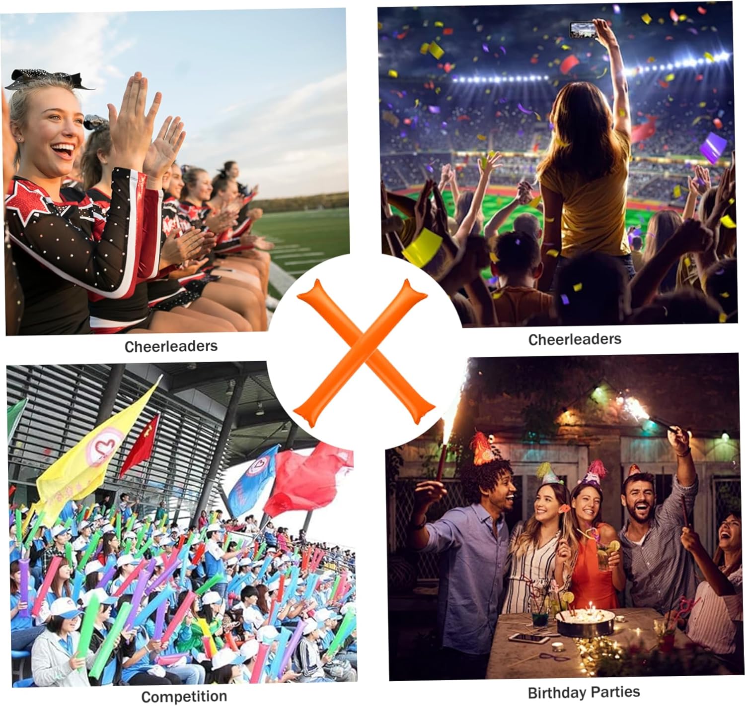 Dimensione ideale per la portabilità: misurazione a 60 x 10 cm (23,6 x 3,9 pollici), questi bastoncini di boom colpiscono il perfetto equilibrio tra essere abbastanza sostanziale per il rumore efficace e abbastanza compatto per una facile portabilità e spazio. Aumenta lo spirito di squadra: quando sono accolti insieme, questi stick per le cheerleader producono un suono forte ed entusiasta, amplificando l'energia di qualsiasi evento sportivo o festa da ballo..Solleva lo spirito della tua squadra e mantieni la folla impegnata ed entusiasta..Bastoncini per tuoni Inflazione semplice e pronto per l'uso: ogni set include un pompino per una facile inflazione..Basta soffiare nei bastoncini per gonfiarsi, rimuovere il pompino e sono pronti per partire!.Rapido, senza problemi e perfetto per il tifo dell'ultimo minuto..Boom Stick Spirit Sticks cheerleader Uso versatile per tutti gli eventi: non solo per lo sport, questi bastoncini di braccio di plastica sono perfetti per eventi di danza, raduni, partite di basket, partite di calcio e qualsiasi occasione in cui vuoi iniettare un po 'di divertimento ed eccitazione nell'atmosfera..Spirit Sticks Cheerleading Thunder Sticks Noise Maker Ampie quantità: questo pacchetto vanta 100 bastoncini gonfiabili, assicurando che tu sia sempre attrezzato per eventi sportivi, balli, basket, partite di calcio e altro ancora..Condividi l'eccitazione con amici e familiari!.Thunder Sticks Noise Maker Rumore Makers per eventi sportivi