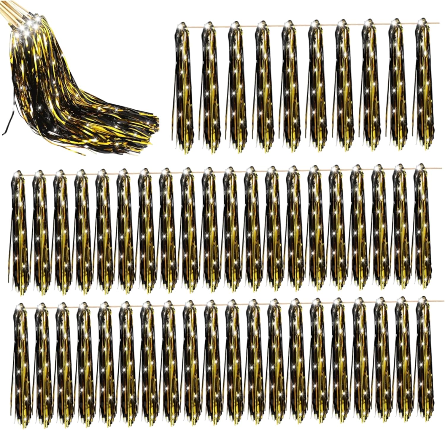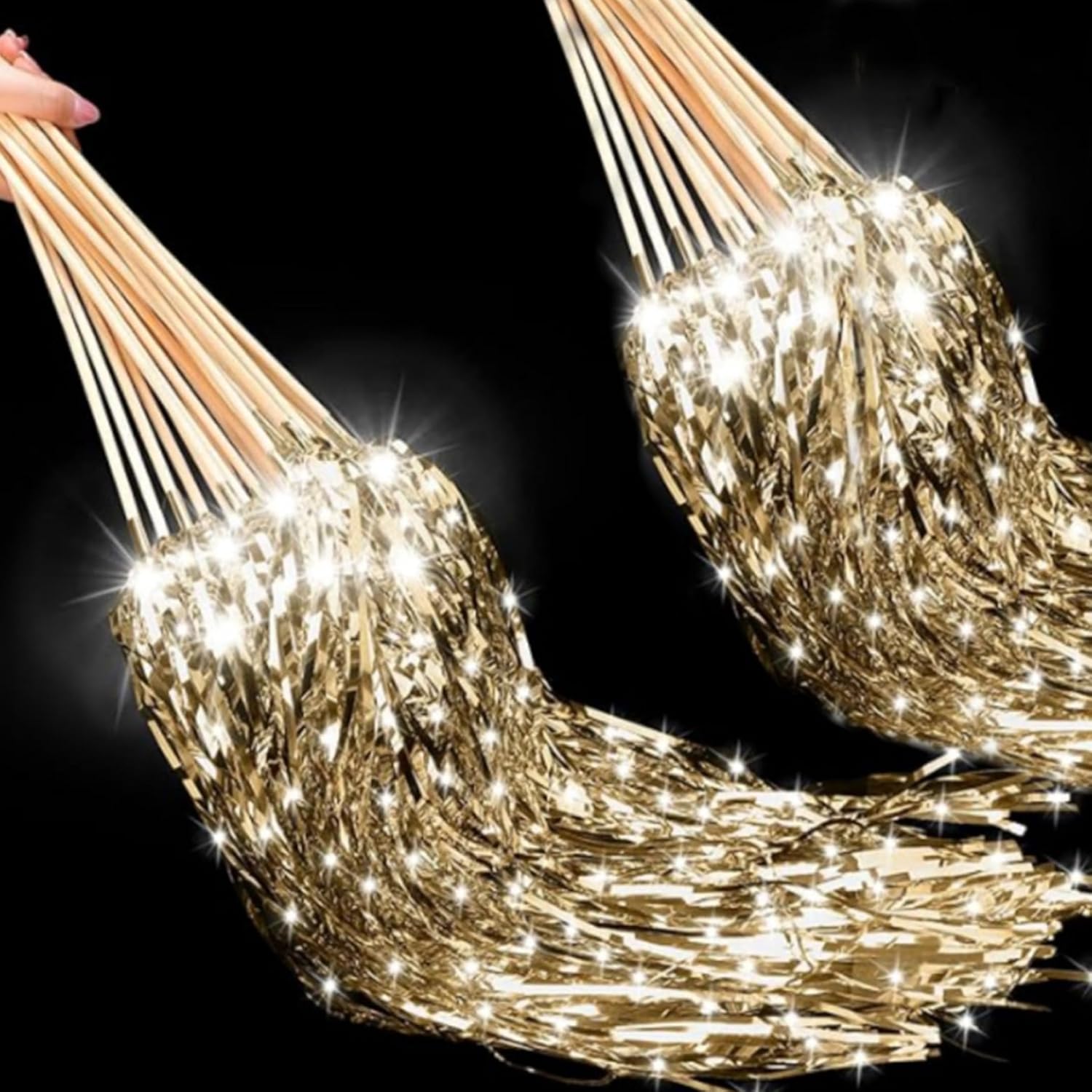 Oggetti di scena versatili: perfetti per i matrimoni, le bacchette luminose fungono anche da stelle filanti e bastoncini di nastro, fornendo un'alternativa elegante e sicura alle tradizionali stelle filanti per matrimoni per foto di invio memorabili Confezione sfusa per grandi eventi: questo set da 50 consente la partecipazione di grandi gruppi, ideale per dare a tutti gli ospiti una partecipazione all'esperienza di addio festivo senza rimanere a corto, aumentando l'eccitazione e la celebrazione collettive Bastone di legno: realizzate con robusti bastoncini di legno, queste bacchette sono facili da tenere e agitare, garantendo un utilizzo confortevole durante il ricevimento di nozze o i momenti di saluto senza scivolare o rompersi Elegante design luminoso: queste bacchette da matrimonio in tinsel dorato a LED da 50 pezzi sono dotate di luci brillanti e scintillanti che creano un'atmosfera magica per l'addio del tuo matrimonio, migliorando la tua celebrazione con una luce calda e incantevole Facile da usare e sicuro: le bacchette LED alimentate a batteria non richiedono fiamme, il che le rende un'opzione più sicura rispetto alle tradizionali stelle filanti pur offrendo straordinari effetti di luce che completano magnificamente il tuo evento