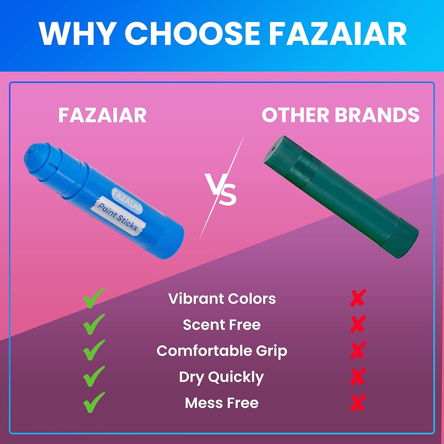 Premium ed ergonomico: questi pennarelli per bambini non si rompono durante la colorazione. La consistenza cremosa e liscia si fonde senza sforzo, mentre la tenuta granulata garantisce una presa forte. Perfettamente sicuro per i bambini Colori vivaci: la confezione dispone di sei mini bastoncini colorati per bambini, tra cui rosso, arancione, giallo, verde, blu e viola. Mescolare in modo omogeneo con acqua per un autentico effetto acquerello Senza disordini: niente più problemi di tubi e tavolozza; crea fantastiche opere d'arte con le penne FAZAIAR senza disordine per bambini che vengono fornite con una minima pulizia della vernice. I pastelli di vernice sono lavabili dalla maggior parte dei vestiti Preserva il tuo capolavoro: le tue creazioni artistiche non perderanno la loro vivacità anche dopo diversi anni con i nostri bastoni per pittura per bambini resistenti alla luce e allo sbiadimento. Viene fornito con pennino più sottile per tratti precisi. Usi versatori: queste penne per bambini funzionano alla grande su fogli, carta, finestre, tela, specchi e molto altro ancora. La migliore scommessa per i bambini di età superiore ai sei anni. Tenere lontano dalla portata dei bambini sotto i 3 anni. Proteggere i coperchi dopo ogni uso, evitare che l'inchiostro si asciughi