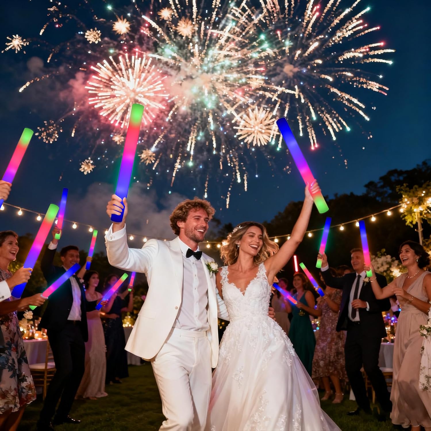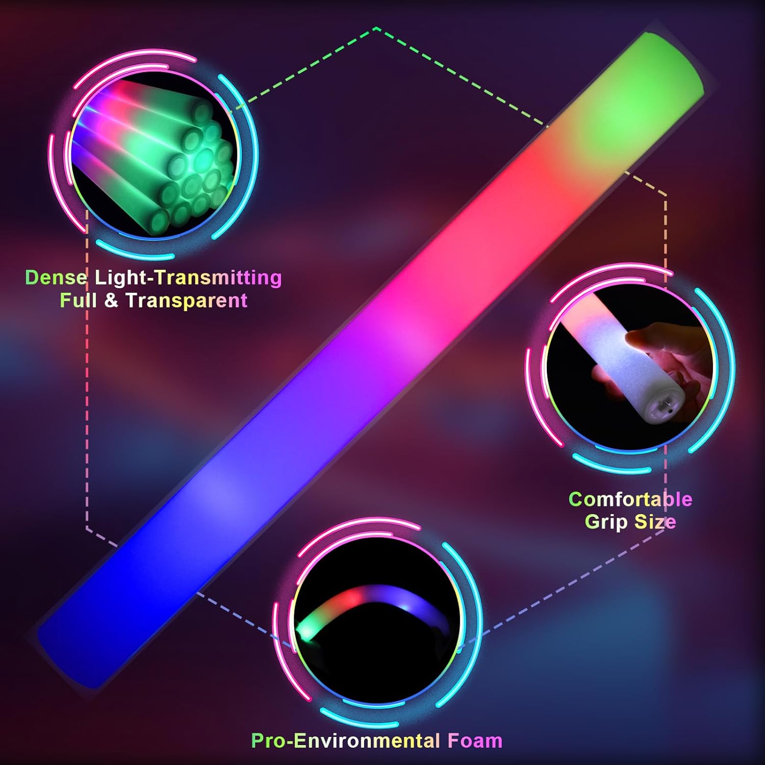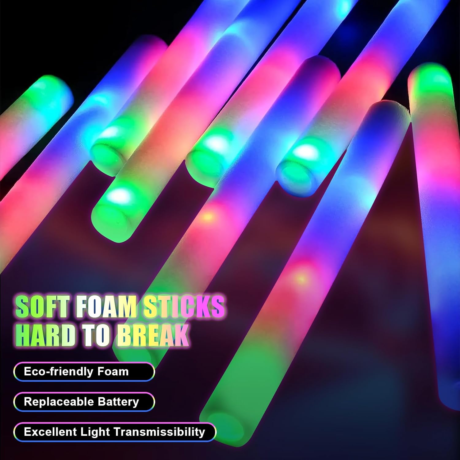 Bastoncini luminosi in schiuma per feste: premere il pulsante di commutazione, i bastoncini in schiuma a LED possono essere commutati tra tre diverse modalità di illuminazione: lampeggiante veloce, lampeggiante lento e lampeggiante alternato. Blu, rosso e verde 3 colori lampeggianti alternativamente, è possibile scegliere la modalità preferita per illuminare la festa, i bastoncini luminosi in schiuma a LED creeranno un'atmosfera colorata e sorprendente. Forniture per feste al neon a lunga durata: questi bastoncini luminosi in schiuma super luminosi sono realizzati in schiuma morbida e plastica di buona qualità che possono essere piegati a piacimento. Ogni confezione di bastoncini luminosi viene fornita con 3 batterie a lunga durata in modo da poter festeggiare tutta la notte con esso. Ogni bacchetta luminosa ha un pulsante on/off, quindi saranno comunque pronte per l'uso alla tua prossima festa. Bastoncini di schiuma illuminati: ogni bastoncino leggero in schiuma è confezionato singolarmente per una facile distribuzione e conservazione. Ai matrimoni, tutti possono scuotere i bastoncini luminosi per il matrimonio per salutare gli sposi e inviare i loro migliori auguri. Ai concerti, scrivi il nome del tuo idolo su bastoncini luminosi a led in schiuma. può anche fai da te con matite colorate su bastoncini luminosi in schiuma. Forniture per feste che si illuminano al buio: i nostri bastoncini luminosi in schiuma aggiungono bagliore alla tua festa buia, i bastoncini di schiuma sono adatti per decorazioni per feste. I bastoncini luminosi per matrimoni sono ideali anche per vari festival, feste di compleanno, matrimoni, concerti, bar, eventi sportivi e decorazioni rave. Perfetto per varie occasioni: i nostri bastoncini luminosi in schiuma a LED sono versatili e adatti a tutti i tipi di feste, sia all'interno che all'aperto, soprattutto di notte. Sono eccellenti bomboniere per compleanni, feste in casa, concerti, matrimoni e persino carnevali di Halloween della comunità.