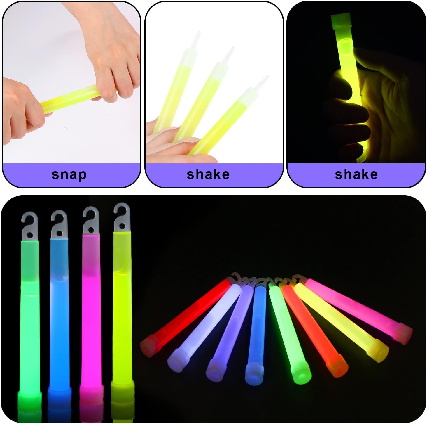 Articoli per feste: inizia la tua festa con questi bastoncini luminosi colorati facili da trasportare e da utilizzare. Realizzabile: questo kit per feste con bastoncini luminosi può essere utilizzato per realizzare braccialetti, collane, ecc. semplicemente unendoli insieme con connettori. Bagliore magico: questi bastoncini luminosi contengono due diverse sostanze che emettono luce o bagliore quando mescolate. Quando l'asta viene piegata per la prima volta, la camera d'aria si rompe, unendo i due contenuti. Quando lo agiti in seguito, i bastoncini si illumineranno intensamente. Materiale sicuro: i bastoncini luminosi sono realizzati in materiale impermeabile, non tossico e non infiammabile. Utilizzo: i bastoncini luminosi sono un'aggiunta perfetta a qualsiasi evento, comprese feste di compleanno, viaggi in campeggio, Halloween, feste luminose, concerti, matrimoni, ecc.