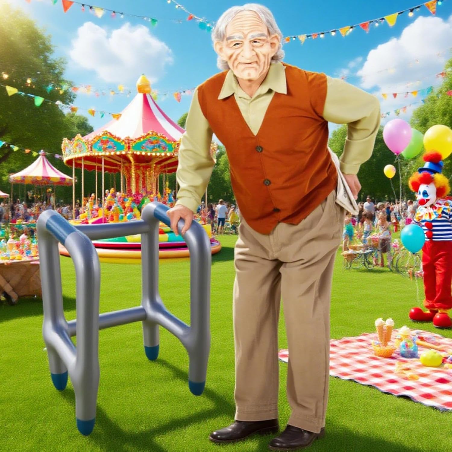 Tecnologia dei Materiali: Utilizza materiali avanzati per una soluzione leggera e impermeabile, mantenendo resilienza e resistenza all'usura quotidiana nel lungo periodo Accessorio Cosplay Anziani: Ideale per appassionati di cosplay che desiderano arricchire i costumi da anziano con questo deambulatore e bastone gonfiabile, offre un tocco realistico e dettagliato per completare la caratterizzazione del personaggio Pratico da conservare: Progettato per sgonfiarsi rapidamente e conservarsi in poco spazio, questo set deambulatore e bastone gonfiabile è per chi cerca convenienza e adattabilità senza compromettere usabilità e affidabilità Regalo Ideale: Questo bastone da passeggio gonfiabile è un pensiero per familiari e amici durante le festività, unisce praticità e allegria donando comfort e supporto quotidiano, rendendo le celebrazioni con i propri ancora più speciali e indimenticabili con un utile e divertente Impiego in Feste: Utilizzato frequentemente durante carnevale Halloween Natale e compleanni questo bastone gonfiabile completa le celebrazioni con la sua presenza allegra e coinvolgente ideale per arricchire la festa con un elemento di gioia e di intrattenimento per tutti