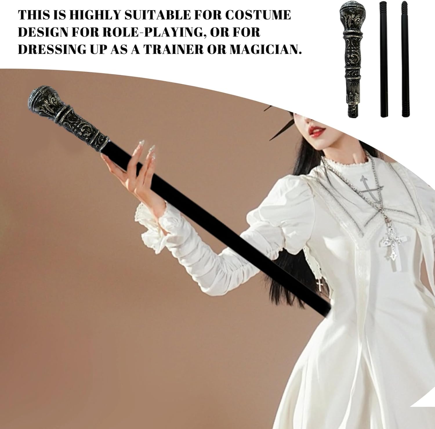 Sicuro per adulti e bambini: progettato come accessorio decorativo, questo bastone di plastica è sicuro da usare sia per gli adulti che per i bambini..Bordi lisci e materiali leggeri prevengono lesioni accidentali durante il gioco. Staccabile e facile da montare: il bastone è disponibile in parti staccabili, consentendo un montaggio rapido e un comodo stoccaggio..Puoi smontarlo facilmente dopo l'uso, risparmiando spazio e garantendo la portabilità. Perfetto per costumi e feste: ideale per Halloween, cosplay, spettacoli teatrali o eventi a tema, questo bastone fantasia completa il tuo outfit ed esalta il fascino del tuo personaggio, sia elegante che eccentrico. Leggero e confortevole: realizzato in plastica affidabile ma leggera, questo bastone da 31,5 pollici è facile da tenere e trasportare per un uso prolungato..Fornisce comfort e facilità durante eventi e spettacoli in costume. Elegante design vintage: questo bastone da passeggio decorativo presenta un elegante design di ispirazione antica che aggiunge un tocco di raffinatezza e divertimento a qualsiasi costume, rendendolo l'accessorio perfetto per feste a tema o cosplay.