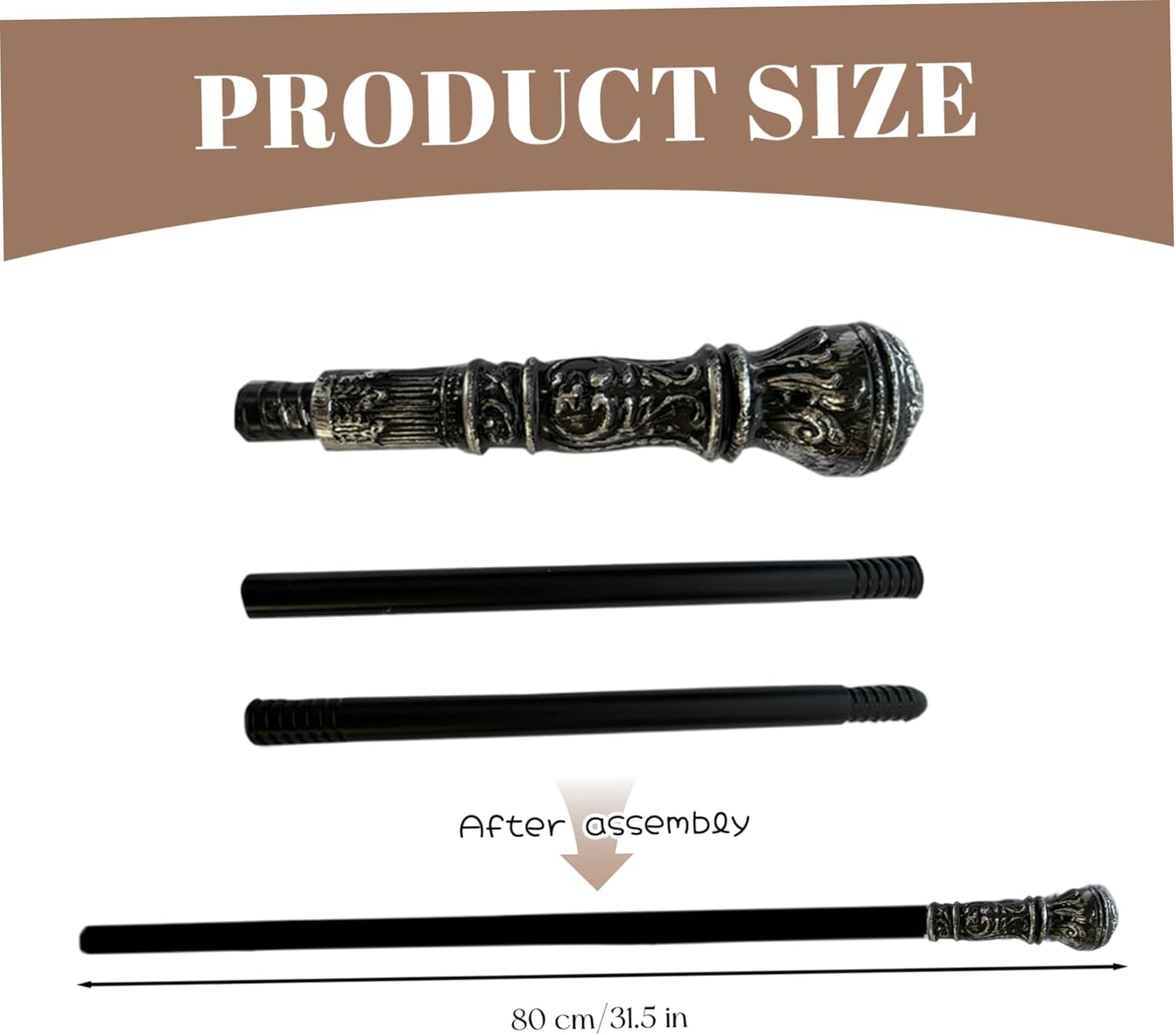 Perfetto per costumi e feste: ideale per Halloween, cosplay, spettacoli teatrali o eventi a tema, questo bastone fantasia completa il tuo outfit ed esalta il fascino del tuo personaggio, sia elegante che eccentrico. Sicuro per adulti e bambini: progettato come accessorio decorativo, questo bastone di plastica è sicuro da usare sia per gli adulti che per i bambini..Bordi lisci e materiali leggeri prevengono lesioni accidentali durante il gioco. Staccabile e facile da montare: il bastone è disponibile in parti staccabili, consentendo un montaggio rapido e un comodo stoccaggio..Puoi smontarlo facilmente dopo l'uso, risparmiando spazio e garantendo la portabilità. Leggero e confortevole: realizzato in plastica affidabile ma leggera, questo bastone da 31,5 pollici è facile da tenere e trasportare per un uso prolungato..Fornisce comfort e facilità durante eventi e spettacoli in costume. Elegante design vintage: questo bastone da passeggio decorativo presenta un elegante design di ispirazione antica che aggiunge un tocco di raffinatezza e divertimento a qualsiasi costume, rendendolo l'accessorio perfetto per feste a tema o cosplay.