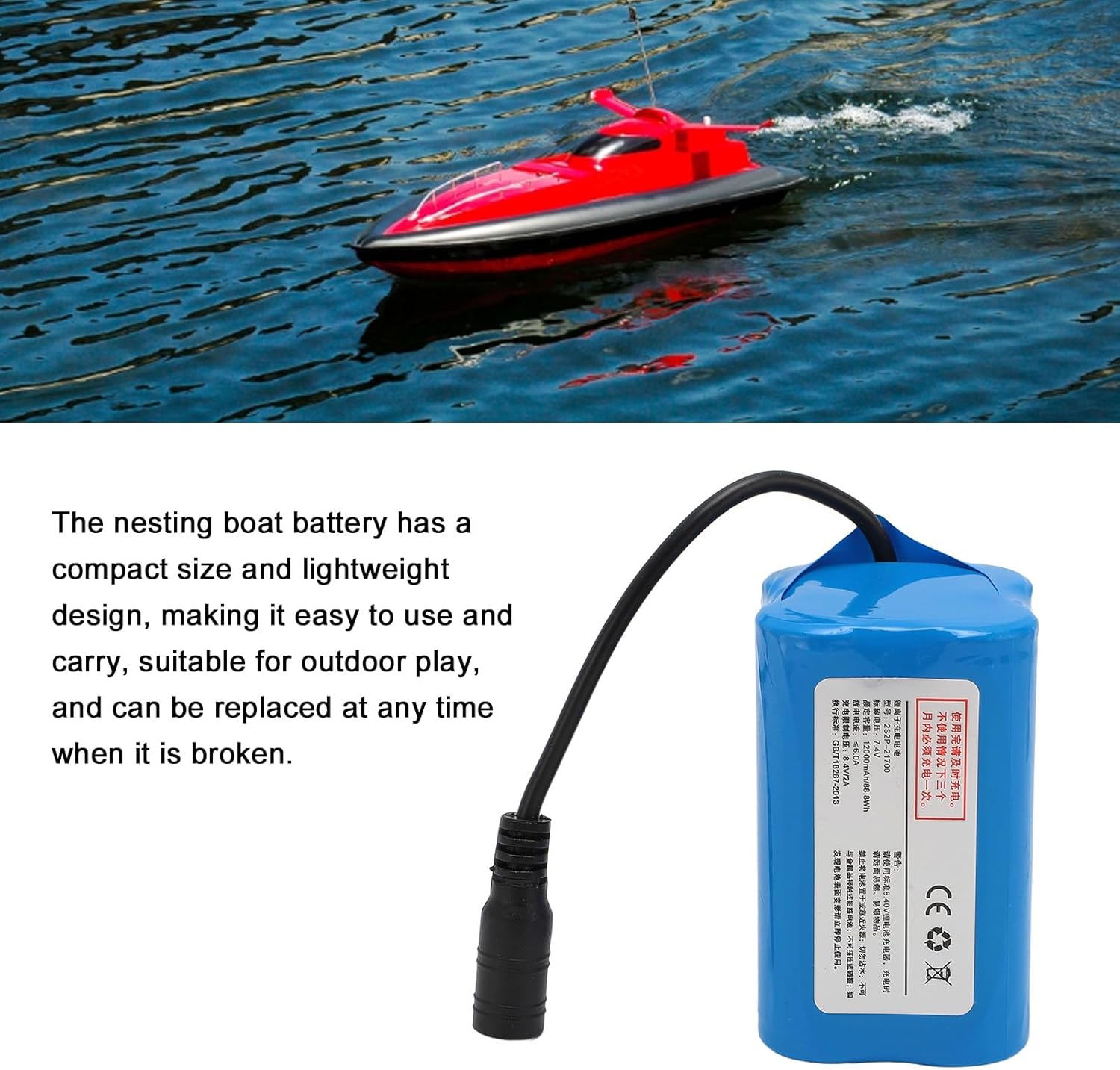 Attrezzatura applicabile: questa batteria al litio ricaricabile è adatta per barche nidificanti, per navi della serie RC e altri modelli di barche telecomandate e può sostituire direttamente la batteria vecchia o danneggiata. Maggiore durata: questa batteria al litio di grande capacità offre una lunga durata, può essere caricata e scaricata più volte, consentendoti di goderti un tempo di divertimento più lungo e di risparmiare denaro. Ricarica : questa batteria al litio supporta la ricarica bilanciata, con una tensione standard di 7,4 V e una tensione limite di carica di 8,4 V 2 A, proteggendo efficacemente la batteria e prolungandone la durata. Batteria ricaricabile di grande capacità: la batteria al litio ricaricabile fornisce una grande capacità di 12000 mAh e può essere applicata per circa 4 ore con una ricarica completa (a seconda della situazione di utilizzo). Design compatto: la batteria della barca nidificante ha dimensioni compatte e design leggero, che la rendono facile da usare e trasportare, adatta per giochi all'aperto e può essere sostituita in qualsiasi momento in caso di rottura.