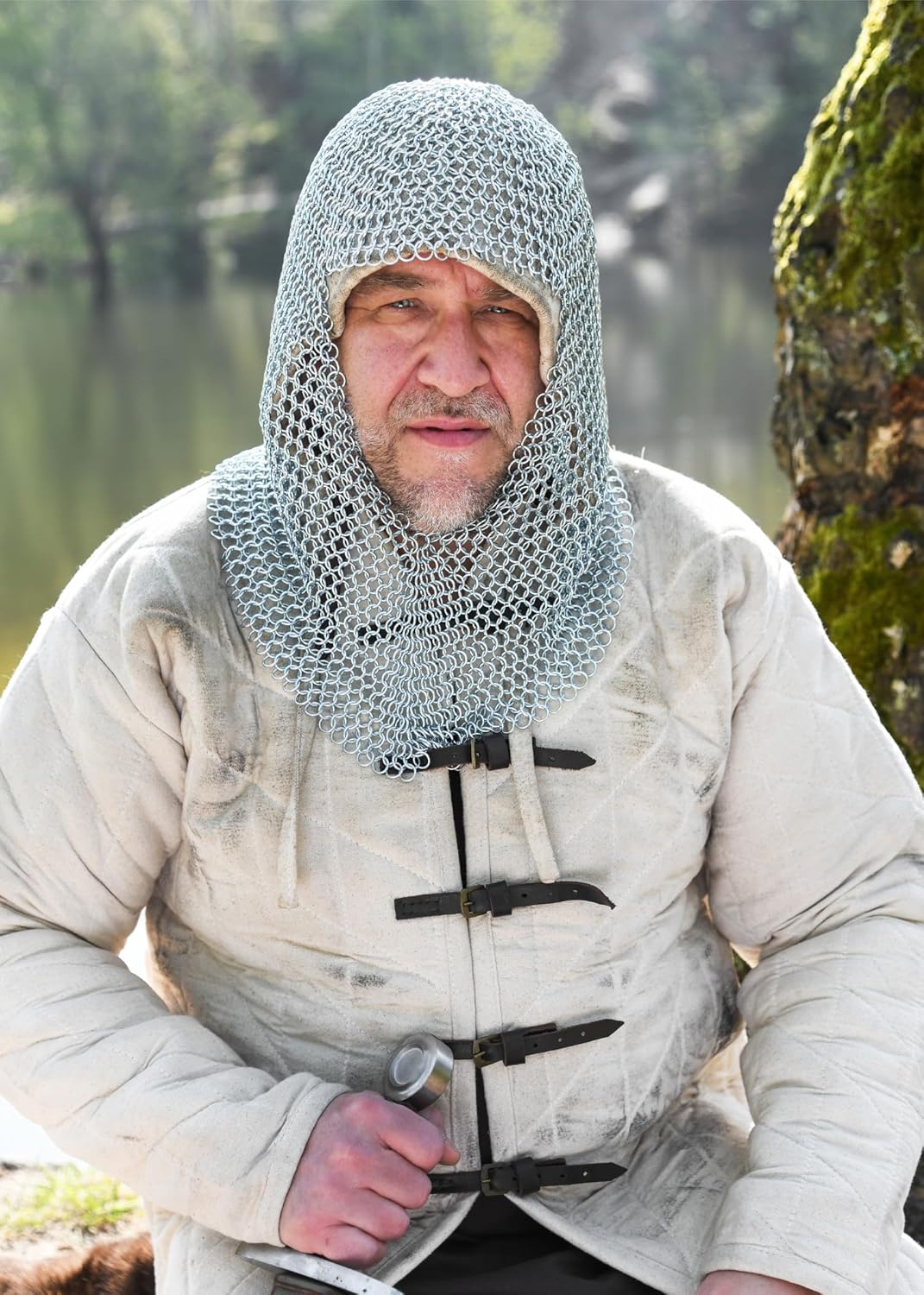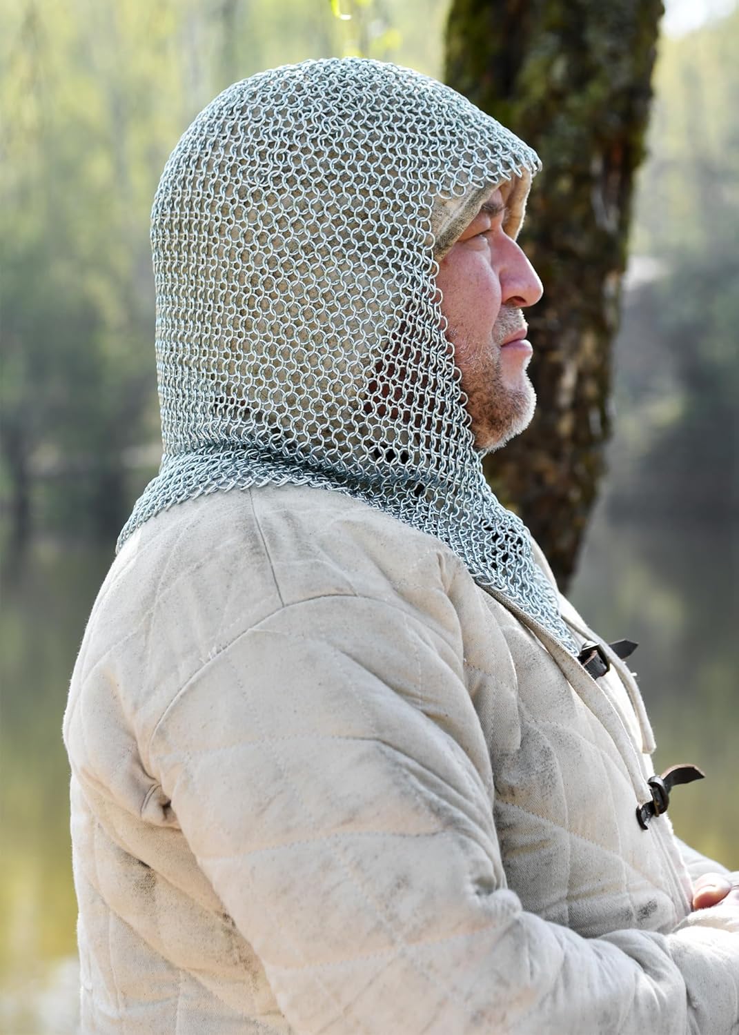 Replica medievale di un cofano di anelli in acciaio al carbonio galvanizzato - inossidabile! 4 anelli intrecciati a mano in 1 anello! Prodotto interamente artigianale Diametro interno solo 9 mm, spessore anello: 1,6 mm. Peso: circa 2,2 - 2,5 kg Un prodotto di qualità della gamma di Battle-Merchant Taglia unica, si adatta a quasi ogni testa!