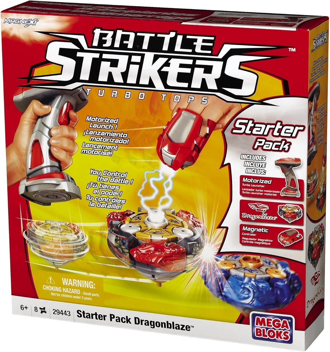 Battle Strikers sono la prossima generazione di battling Tops, mettendo il potere di controllo nelle vostre mani REV il Turbo lanciatore alla massima RPM Per avviare Striker e stimola i tuoi avversario utilizzando il controller di orientare la parte superiore Ogni Starter Pack contiene Turbo lanciatore, attaccante e controller Richiede 3 batterie AA (non incluse nella confezione)