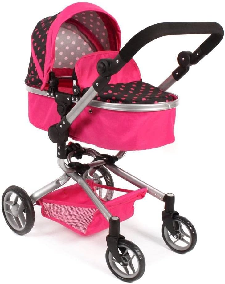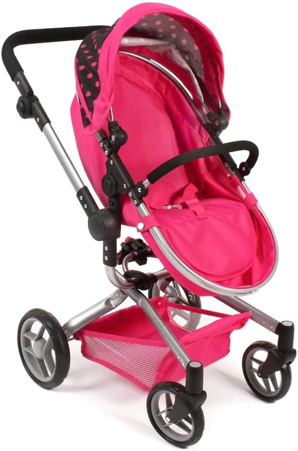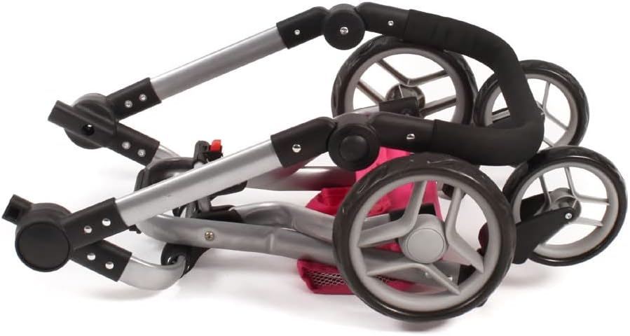 Facoòe da guidare grazie alle ruote girevoli anteriori Maniglione ad altezza regolabile: 46 cm – 82 cm. Con maniglione orientabile, parasole regolabile, archetto di sicurezza e rete portaoggetti. Il seggiolino sportivo ha un gancio di sicurezza e si trasforma con pochi passaggi in navicella. Per bambole fino a 52 cm. Dimensioni: 71 x 42 x 81 cm.