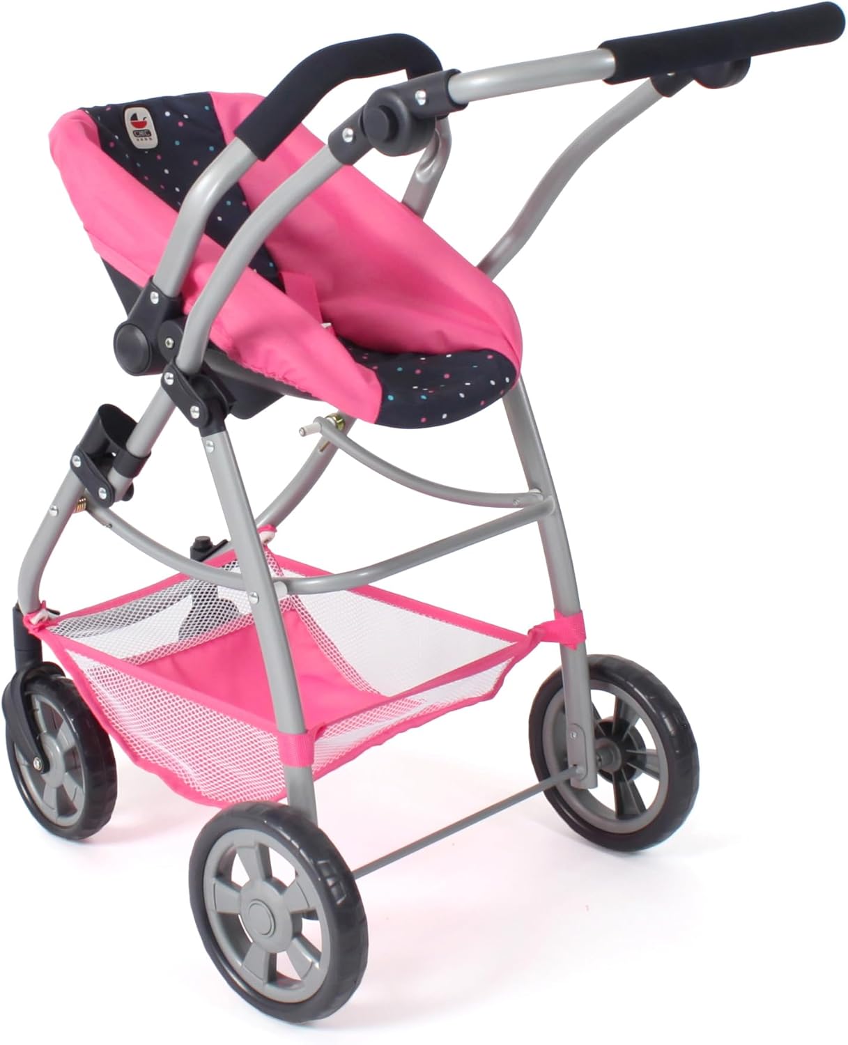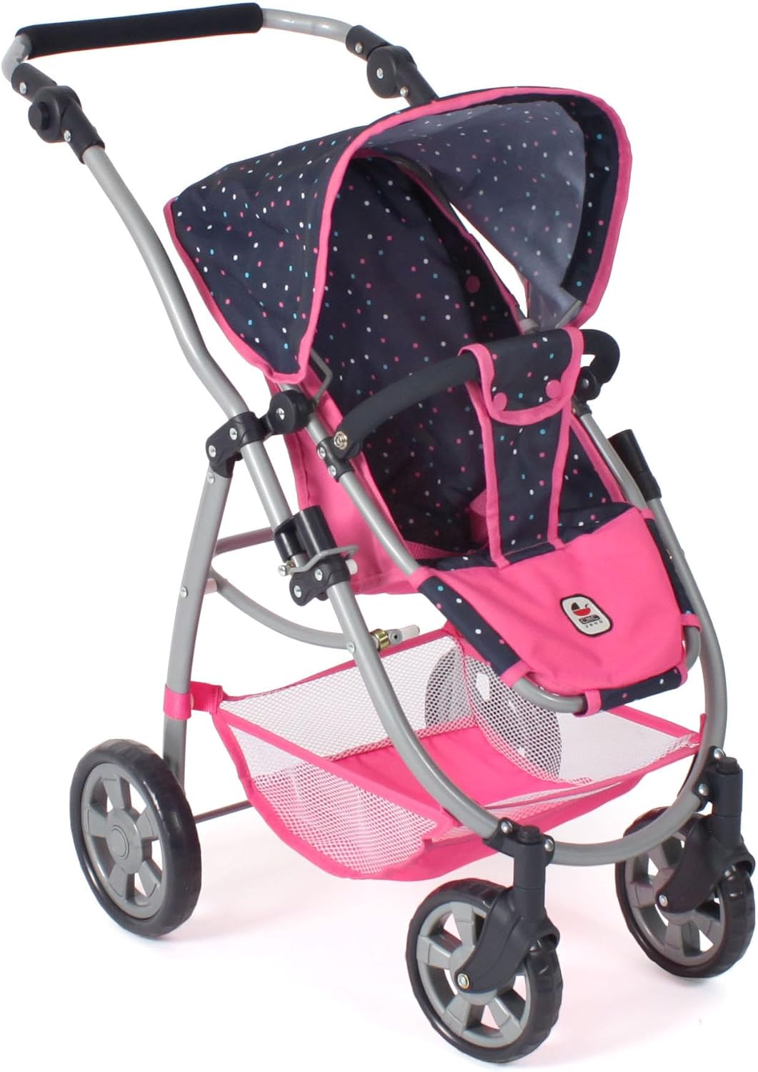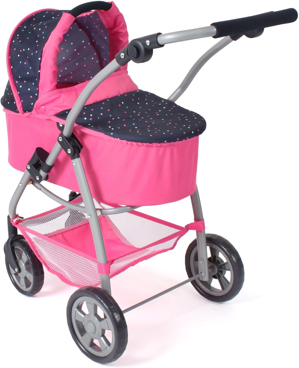 Fantastica carrozzina per bambole con navicella, carrozzina sportiva e seggiolino per auto Il passeggino sportivo è dotato di una cintura di sicurezza a 3 punti e può essere utilizzato sia in direzione di marcia che di fronte alla mamma delle bambole La coperta antivento della navicella funge anche da coprigambe per il seggiolino sportivo Maniglione regolabile in altezza da 59 a 86 cm – il più grande passeggino per bambole nel nostro assortimento Adatto per bambole fino a 52 cm. Dimensioni: 70 x 43 x 81 cm; peso: 3,8 kg