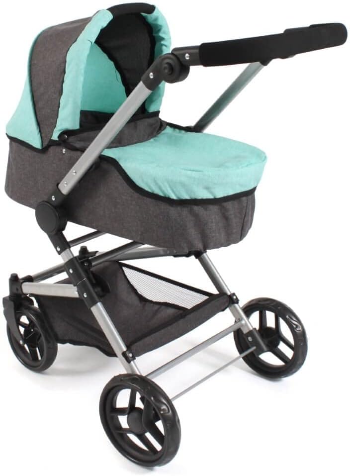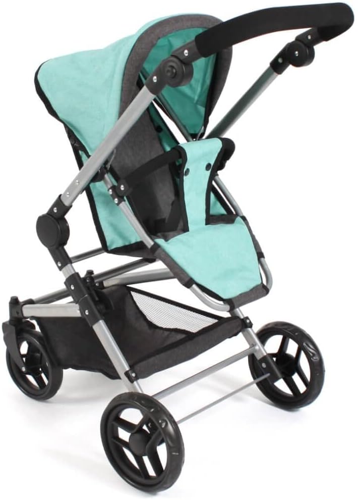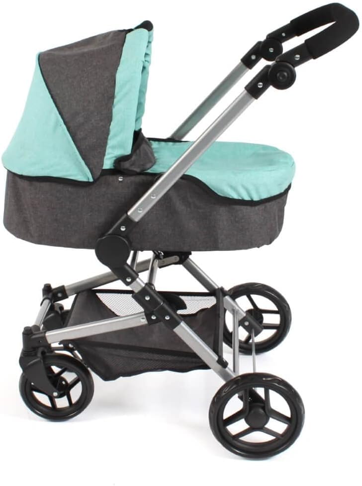 Splendido set di carrozzine per bambole con navicella, passeggino sportivo e seggiolino per auto Il passeggino sportivo è dotato di una cintura di sicurezza a 3 punti e può essere utilizzato sia in direzione di marcia che di fronte alla mamma delle bambole Il seggiolino auto incluso nel set può essere utilizzato anche separatamente La maniglia è regolabile in altezza da 60 a 85 cm e si adatta così all'altezza del bambino Adatto per bambole fino a 52 cm; dimensioni dell'articolo: 61 x 44,5 x 85 cm; peso: 4,6 kg
