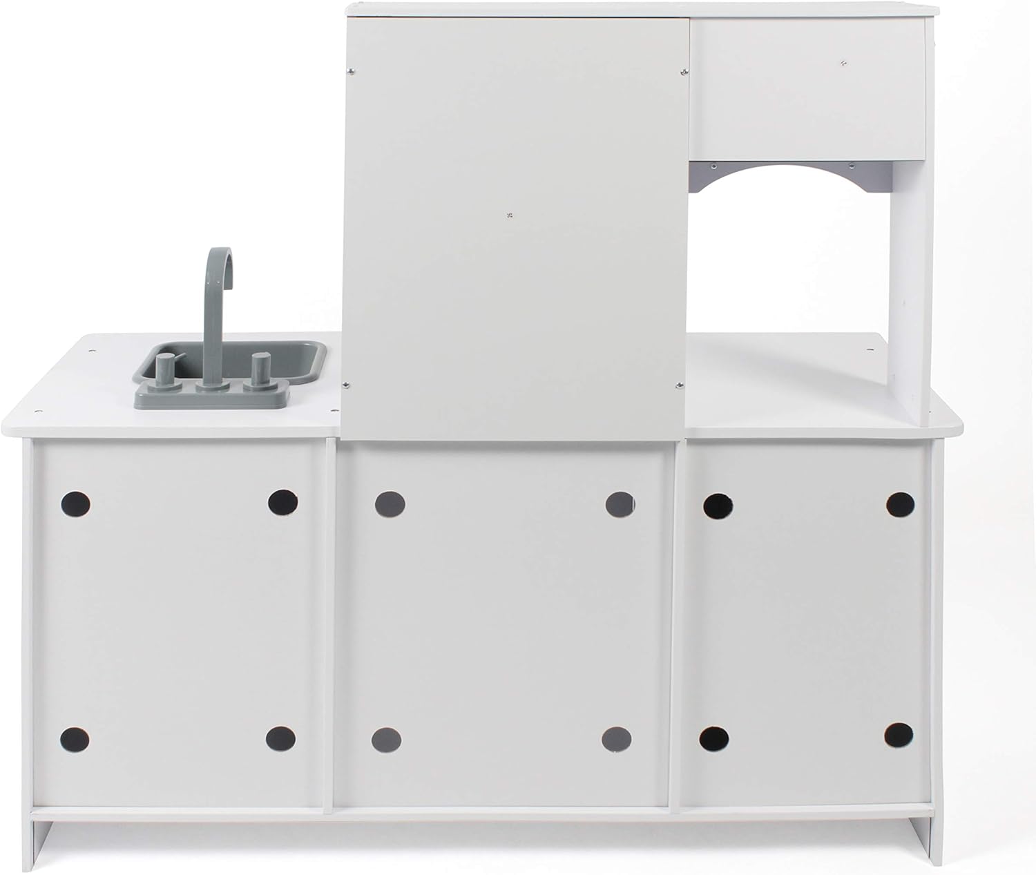 La splendida cucina in legno è dotata di quattro fornelli, una cappa, un forno a microonde con pannello di controllo, un grande forno, frigorifero, lavatrice e un lavello estraibile con rubinetto. Sotto il forno a microonde sono inoltre montati tre ganci per il fissaggio di utensili da cucina. La moderna lavatrice ha un lembo che può essere aperto separatamente, in modo che il bucato possa essere riposizionato in qualsiasi momento. Le tre manopole emettono suoni realistici di clic. Le cucine da gioco promuovono la creatività dei tuoi bambini e ti permettono di usare la tua immaginazione per cucinare piatti deliziosi per i tuoi ospiti. Dimensioni: 96 x 37,5 x 96,5 cm; altezza piano di lavoro: 50,5 cm, peso: 18 kg Età consigliata: la cucina giocattolo è adatta per bambini dai 3 anni in su