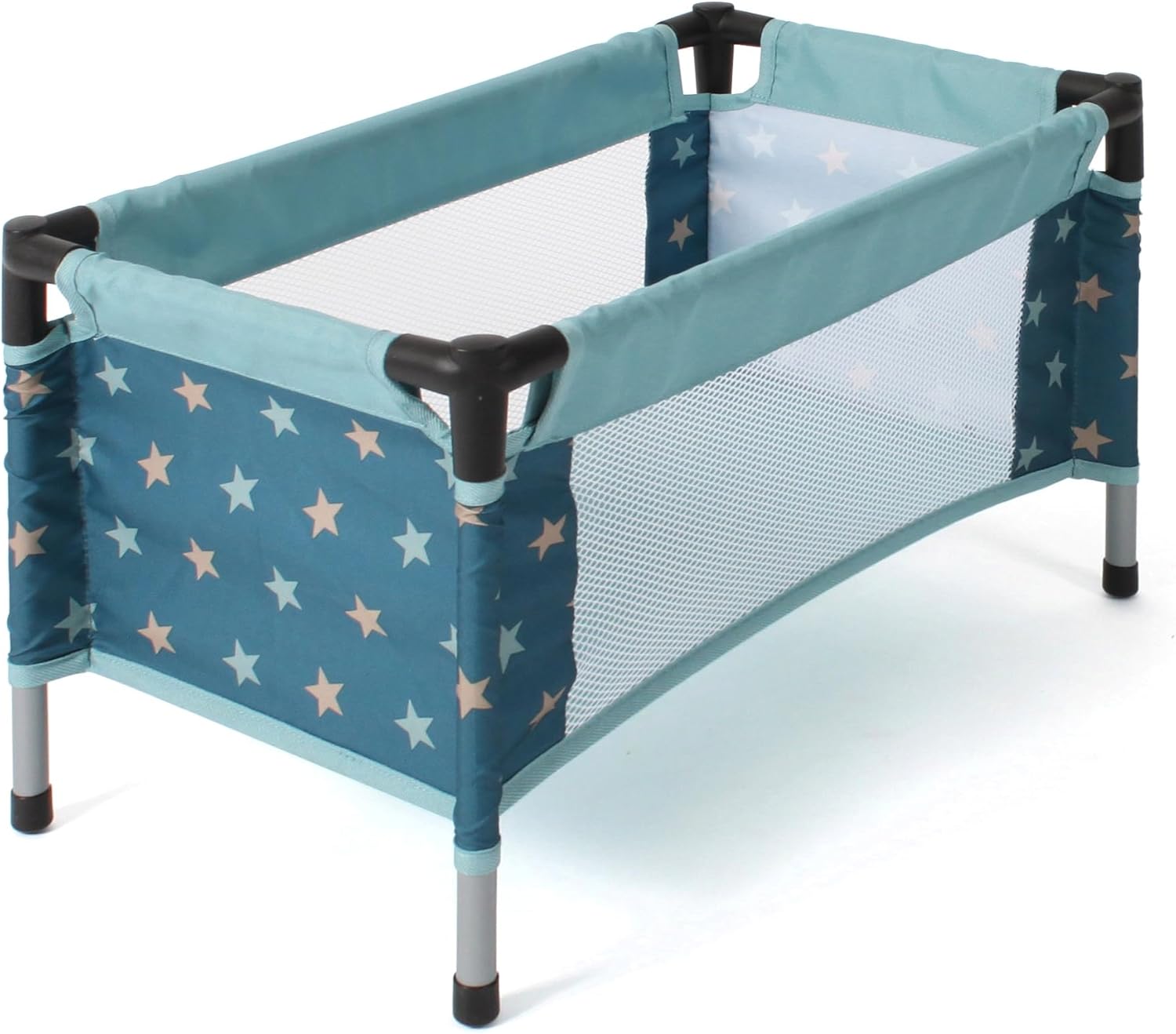 Lettino da viaggio per bambole con borsa per il trasporto in tessuto Letto per bambole compatto e facile da piegare Adatto per bambole fino a 50 cm Dimensioni articolo: ca. 54 x 31 x 32 cm - Peso: 1,2 kg Bellissimo letto per bambole dal moderno design a pois