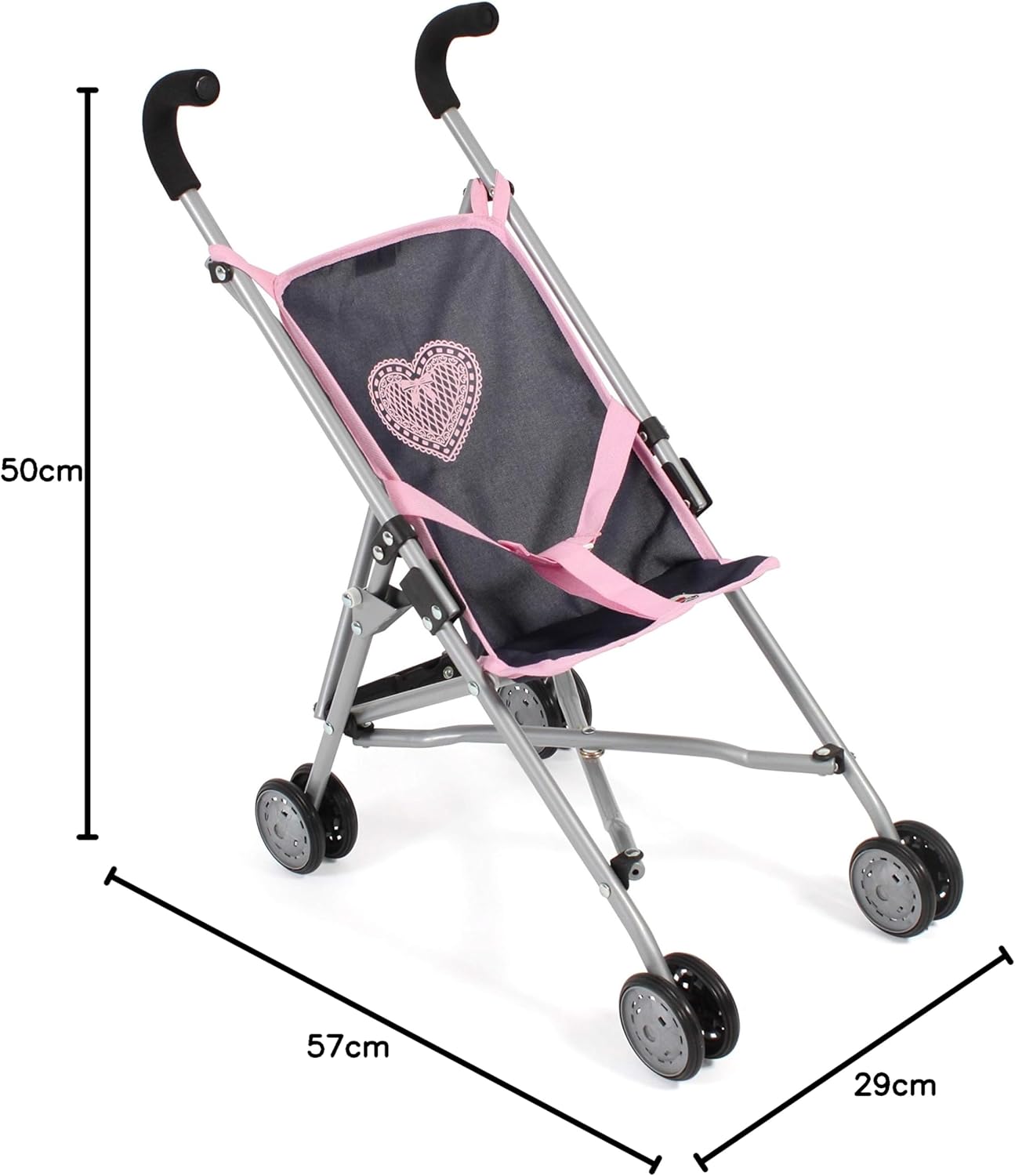 Attraente passeggino per bambole per le più giovani mamme delle bambole Con moderni manici morbidi e cinghia di fissaggio Piatta e facile da piegare La maniglia del passeggino per bambole è alta 57 cm Adatto per bambole fino a 52 cm