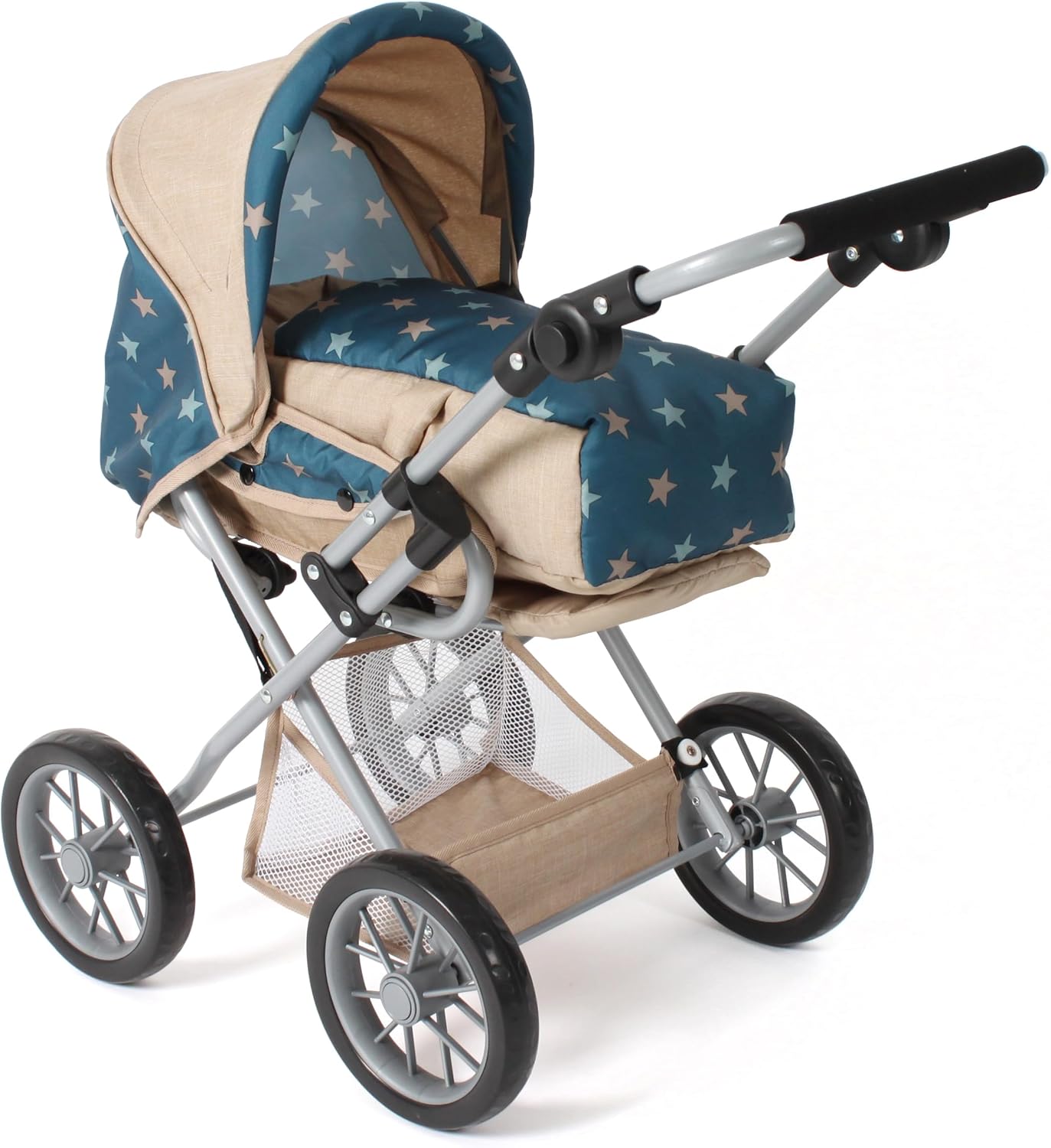 Particolarmente adatto per le giovani mamme delle bambole Maniglione regolabile in altezza da 43 a 67 cm La borsa è rimovibile e lo schienale può essere facilmente convertito in un sedile sportivo Con 3 possibilità di utilizzo come carrozzina per bambole, passeggino sportivo e morbida borsa per il trasporto Per bambole fino a circa 46 cm. Dimensioni: 64 x 37 x 68 cm, peso: 3 kg