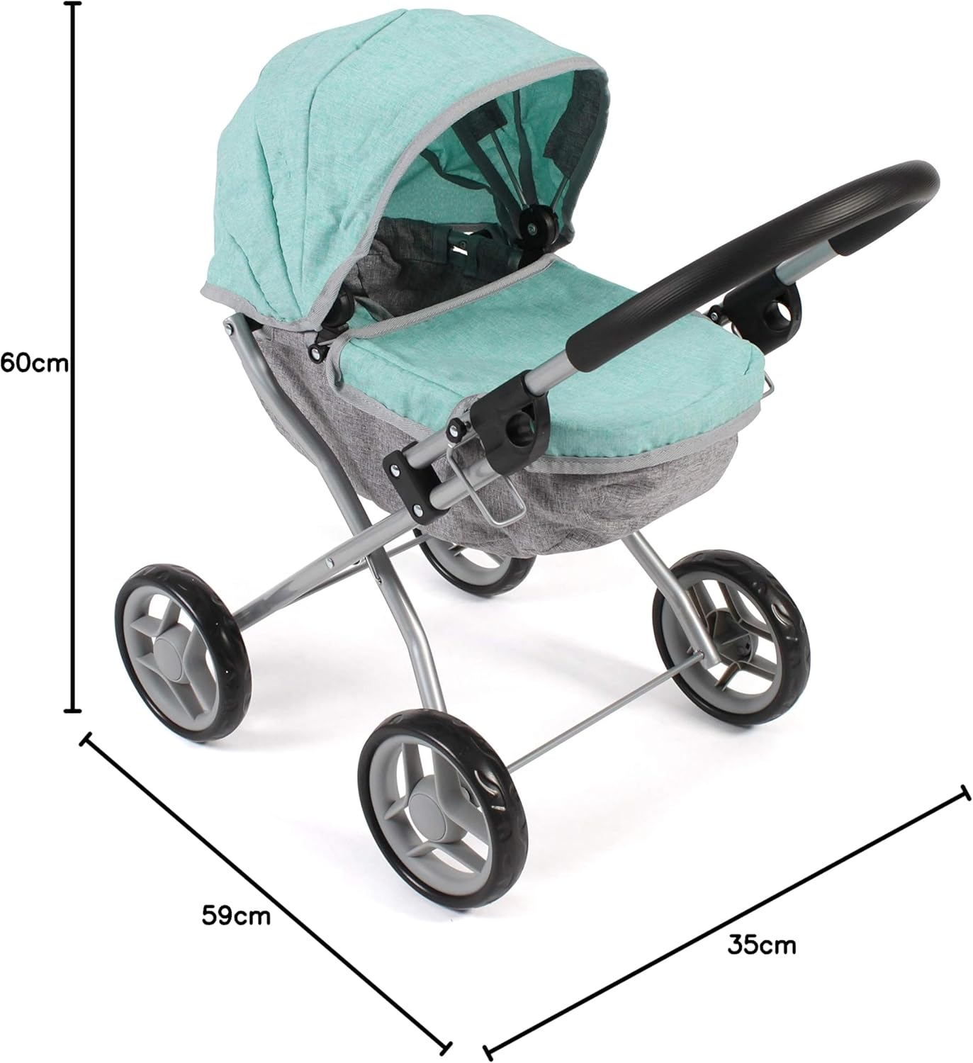 Il nuovissimo passeggino Lilli è particolarmente adatto per le giovani mamme delle bambole Il passeggino per bambole è pieghevole e ha un'altezza di 55 cm Il tettuccio è pieghevole, può essere ripiegato o utilizzato come protezione dal sole e dagli sguardi indiscreti Il passeggino Lilli è adatto per bambole fino a circa 41 cm Dimensioni: 59 x 35 x 60 cm, peso: 1,7 kg