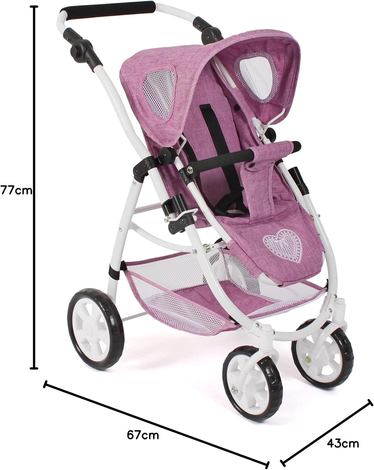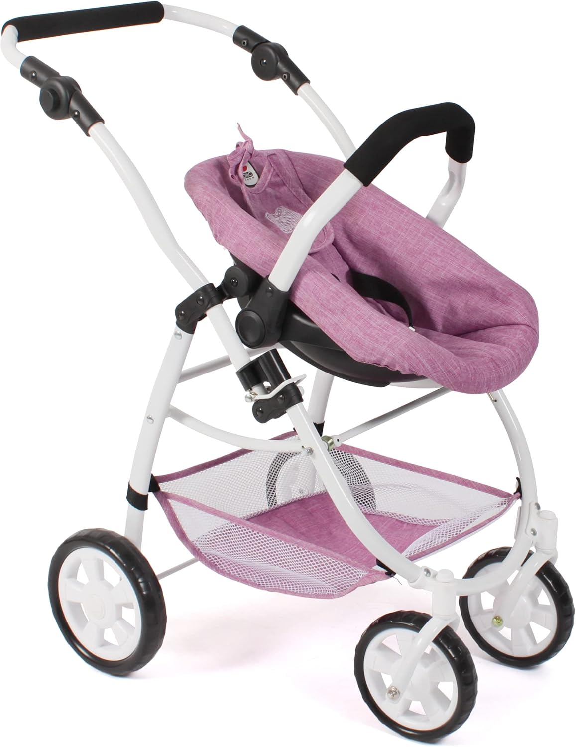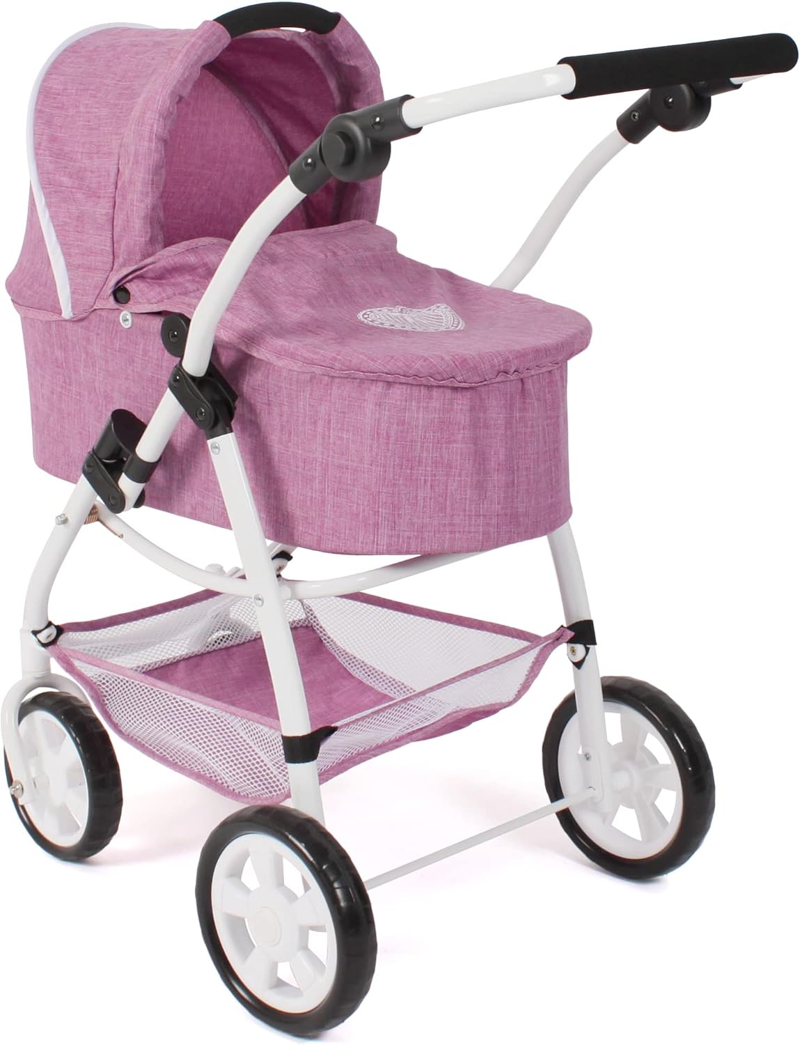 Fantastica carrozzina per bambole con navicella, carrozzina sportiva e seggiolino per auto Il passeggino sportivo è dotato di una cintura di sicurezza a 3 punti e può essere utilizzato sia in direzione di marcia che di fronte alla mamma delle bambole La coperta antivento della navicella funge anche da coprigambe per il seggiolino sportivo Maniglione regolabile in altezza da 55 a 82 cm Adatto per bambole fino a 52 cm; dimensioni dell'articolo: 67 x 43 x 77 cm; peso: 6,2 kg
