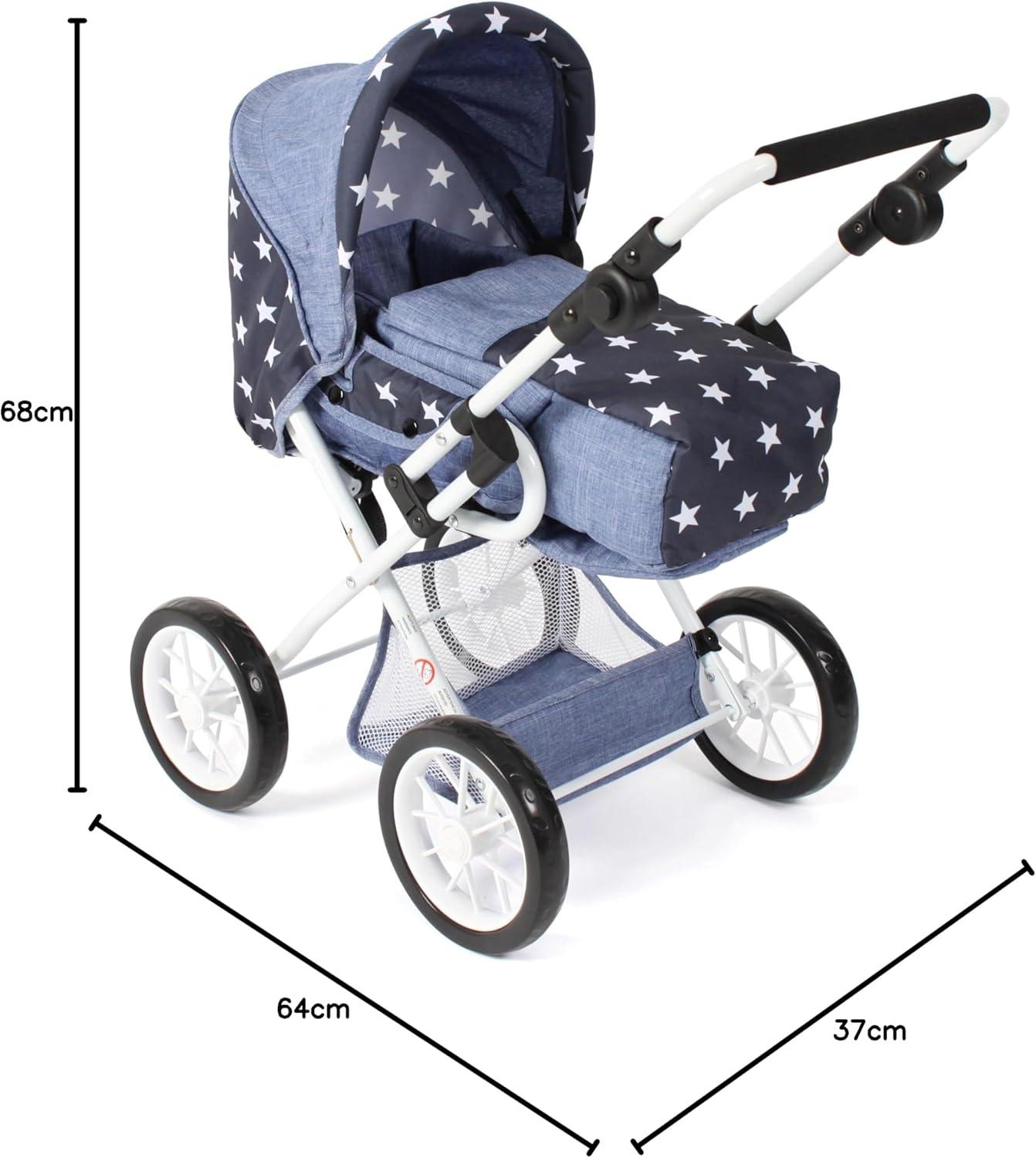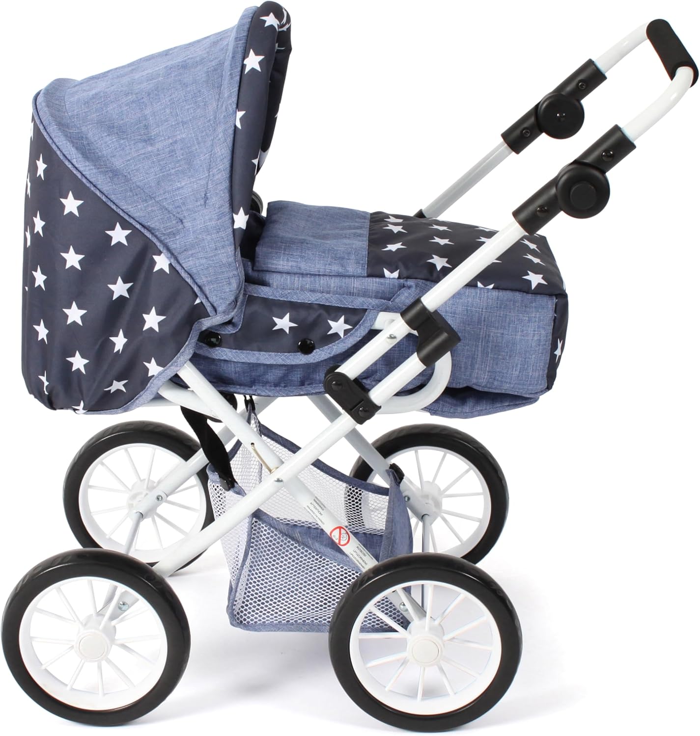 Il passeggino Leni è un passeggino tradizionale perfetto per la bambola preferita del tuo piccolo. Scatena la tua immaginazione e crea ricordi preziosi che durano tutta la vita. Con questa replica di un passeggino, il tuo piccolo può essere proprio come mamma o papà. Il passeggino Leni è perfetto per bambini dai 3 ai 5 anni. Grazie alla maniglia regolabile in altezza da 43 a 67 cm, si adatta all'altezza del bambino. La morbida borsa imbottita è rimovibile e lo schienale del passeggino può essere facilmente convertito in un seggiolino sportivo. La capottina è regolabile e la station wagon Leni può essere ripiegata in modo semplice e salvaspazio. Ha un pratico cestino per riporre e trasportare accessori per bambole. Con 3 possibilità di utilizzo come carrozzina per bambole, passeggino per bambole e morbida borsa per il trasporto La tuta Leni è adatta per bambole fino a una dimensione di circa 46 cm. Dimensioni: 64 x 37 x 68 cm, peso: 3 kg