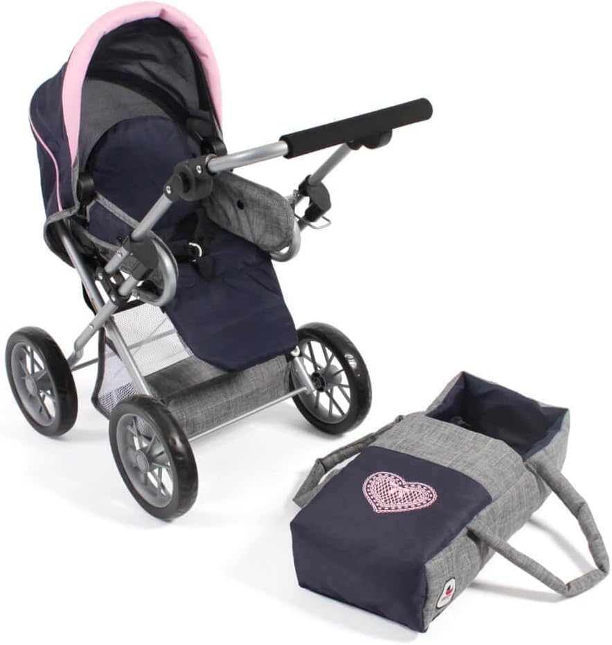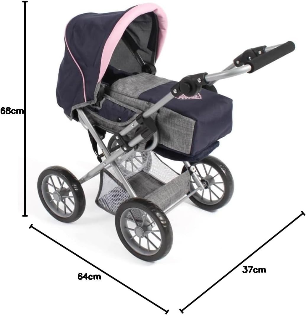 Appositamente progettato per le giovani mamme delle bambole dai 3 ai 6 anni Maniglione regolabile in altezza da 43 a 67 cm La borsa è rimovibile e lo schienale può essere facilmente convertito in un sedile sportivo Con 3 possibilità di utilizzo come carrozzina per bambole, passeggino sportivo e morbida borsa per il trasporto Per bambole fino a una dimensione di circa 46 cm. Dimensioni: 64 x 37 x 68 cm, peso: 3 kg