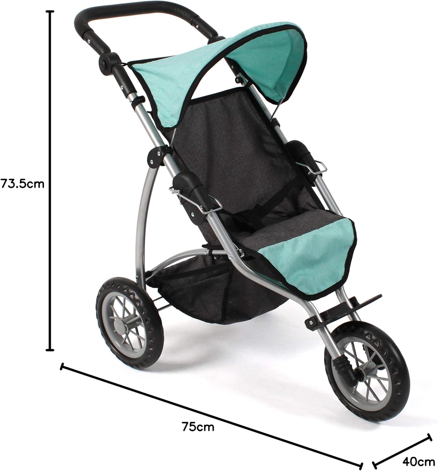 Il robusto passeggino a 3 ruote Leon in moderno design jeans ha un manico regolabile in altezza da 49 a 78 cm e può quindi crescere insieme alle mamme e ai papà delle bambole Grazie al telaio stabile e alle ruote robuste, il passeggino è il compagno ideale per le passeggiate anche su terreni irregolari Altre caratteristiche sono il tettuccio pieghevole, una cintura di sicurezza e la grande rete per bagagli La creatività dei bambini è promossa dal carro che li accompagnerà in molte avventure Adatto per bambole fino a 50 cm; dimensioni dell'articolo: 75 x 40 x 73,5 cm; peso: 2,1 kg