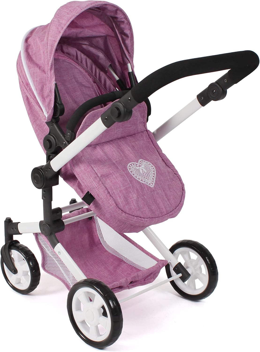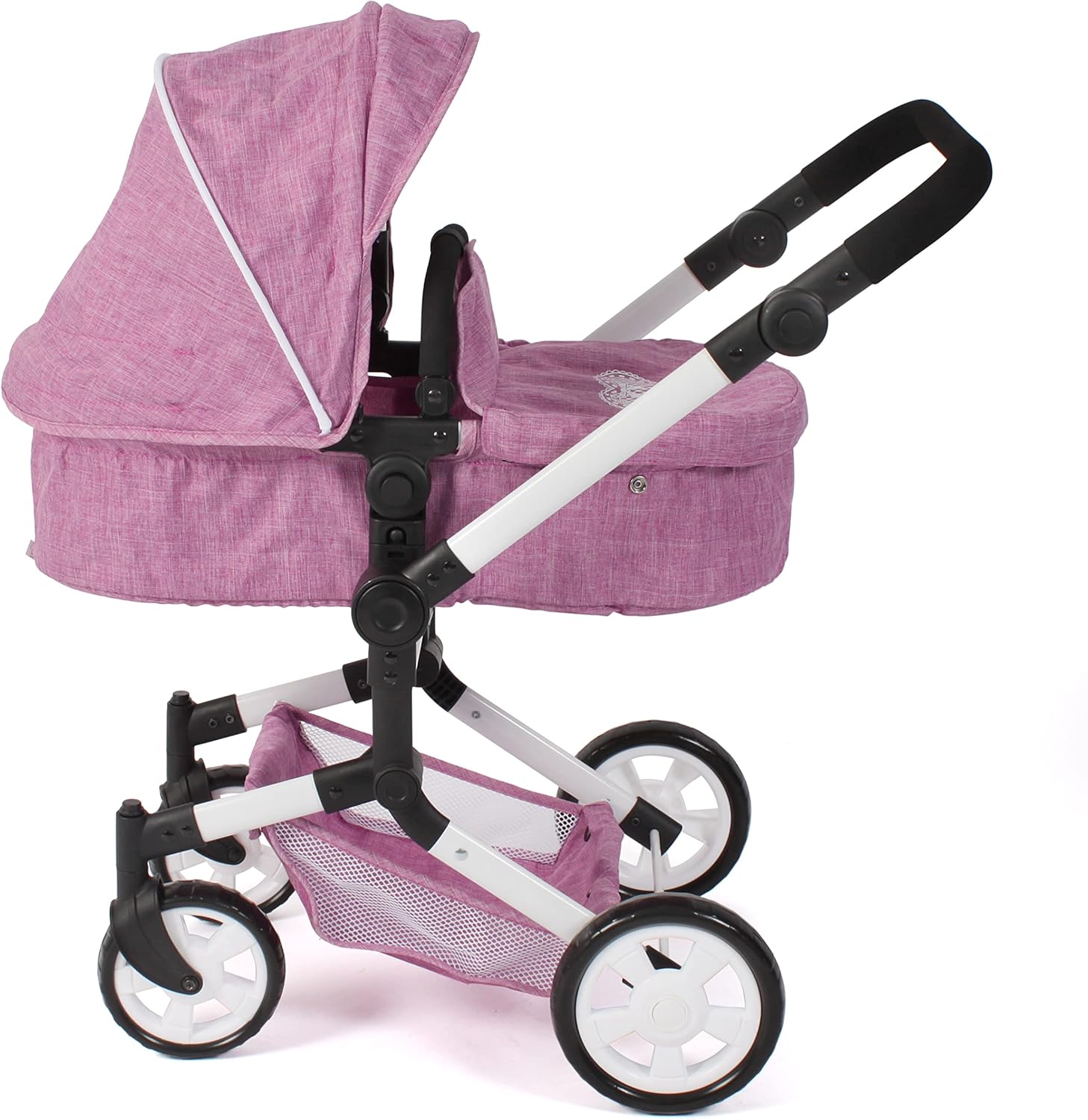 Bayer Chic 2000 - Passeggino per bambole Linus, passeggino combinato 3 in 1 per bambini dai 4 agli 8 anni, set di passeggino per bambole, jeans rosa