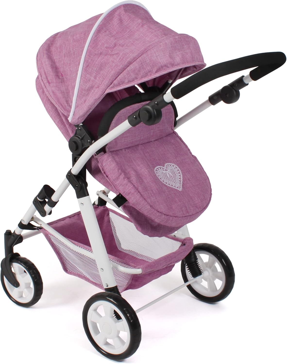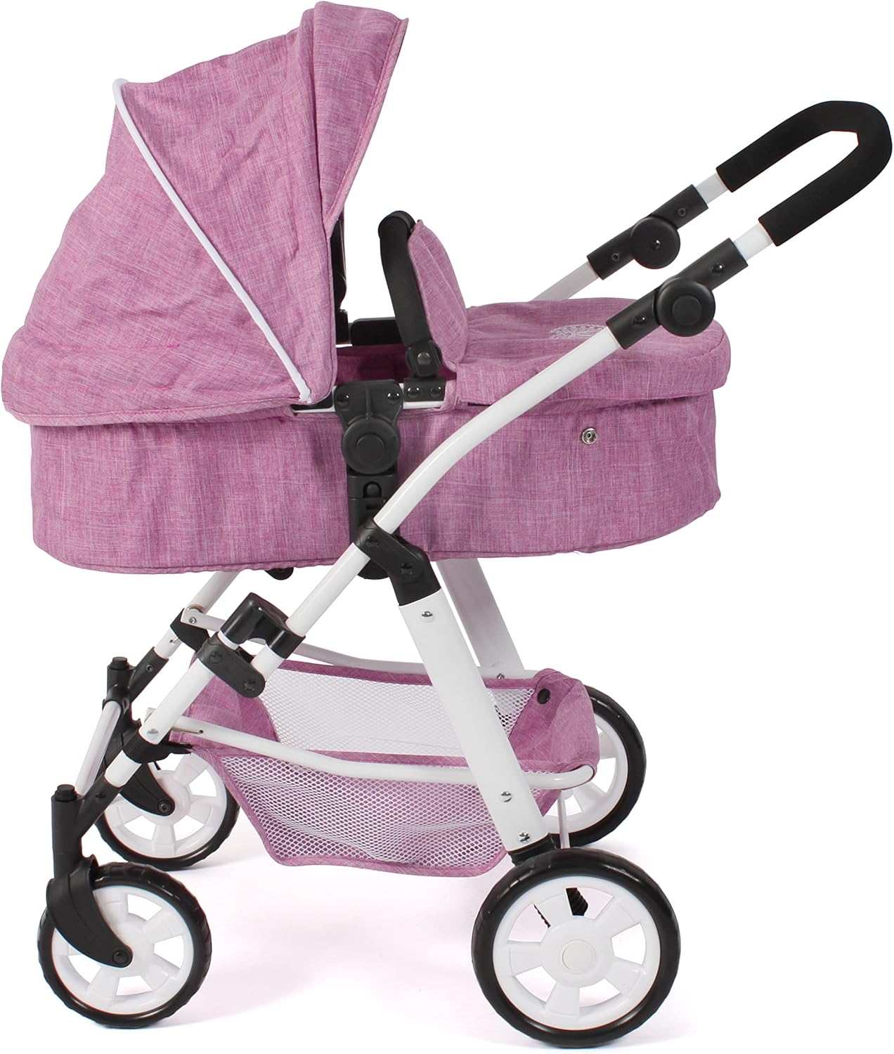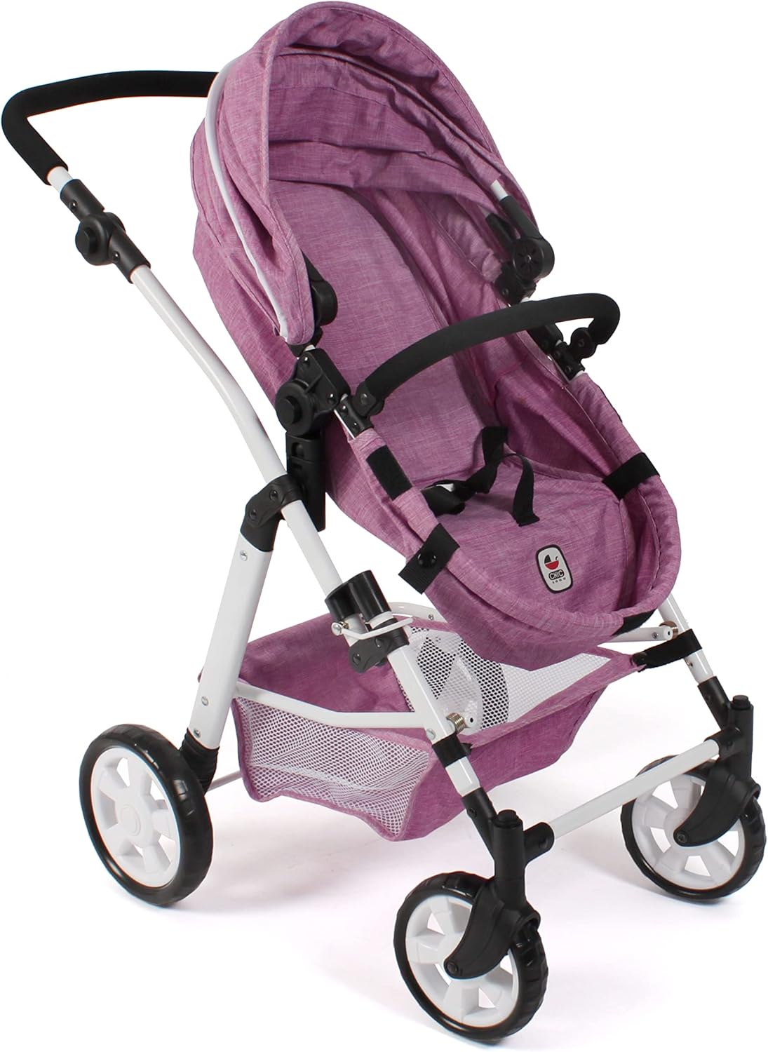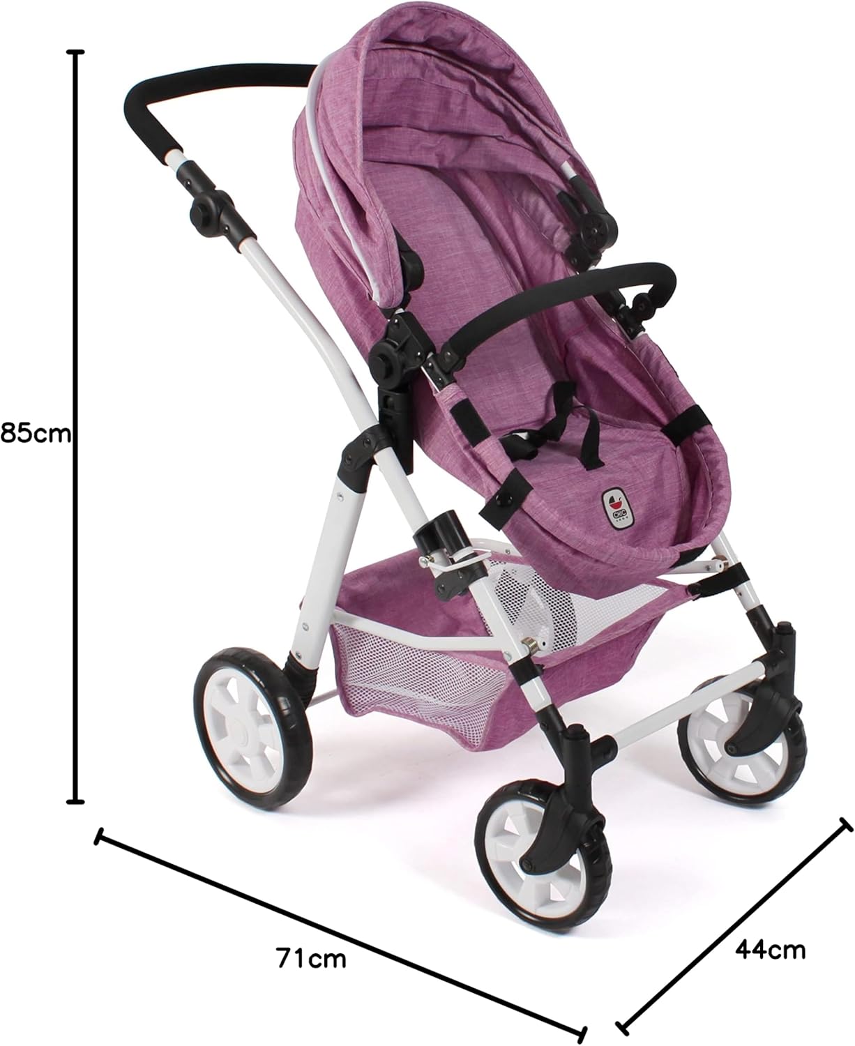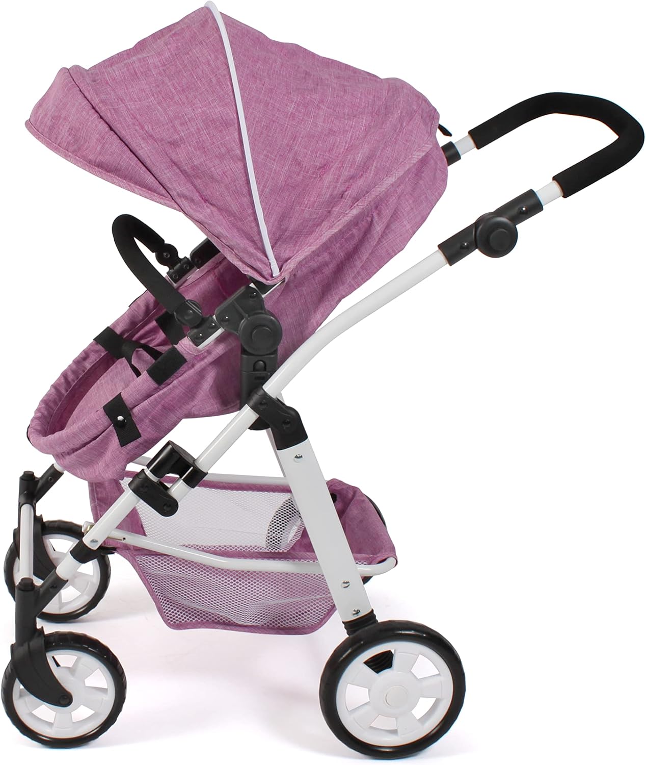 Carrozzina per bambole combinata con molte pratiche funzioni e telaio elegante La maniglia è regolabile in altezza da 45 a 84 cm e si adatta così all'altezza del bambino Il passeggino sportivo è dotato di una cintura di sicurezza a 3 punti e può essere utilizzato sia in direzione di marcia che di fronte alla mamma delle bambole Il seggiolino sportivo ha una staffa di sicurezza e può essere trasformato con pochi gesti in vasca da bagno con superficie piana. La copertura della navicella funge anche da copertura antivento per il seggiolino sportivo Adatto per bambole fino a 50 cm. Dimensioni: 71 x 44,5 x 85 cm, dimensioni da chiuso: 67 x 44,5 x 25 cm, peso: 4,2 kg