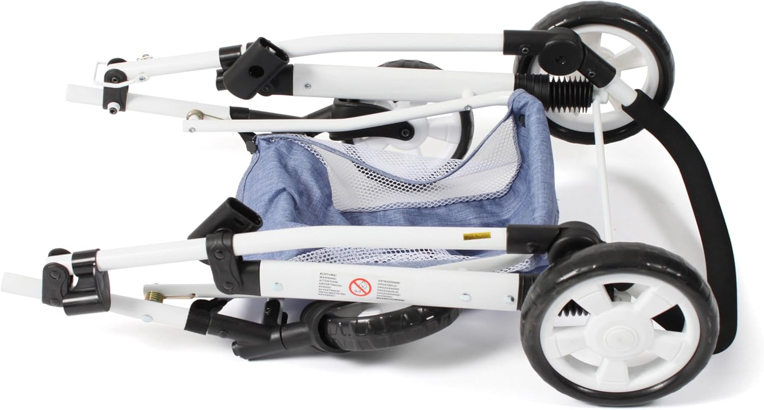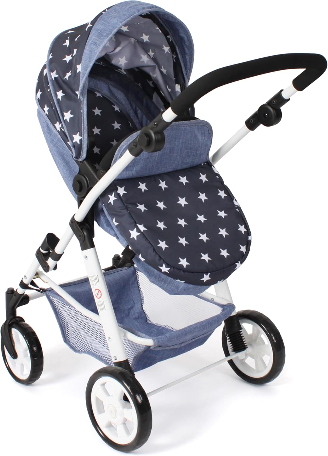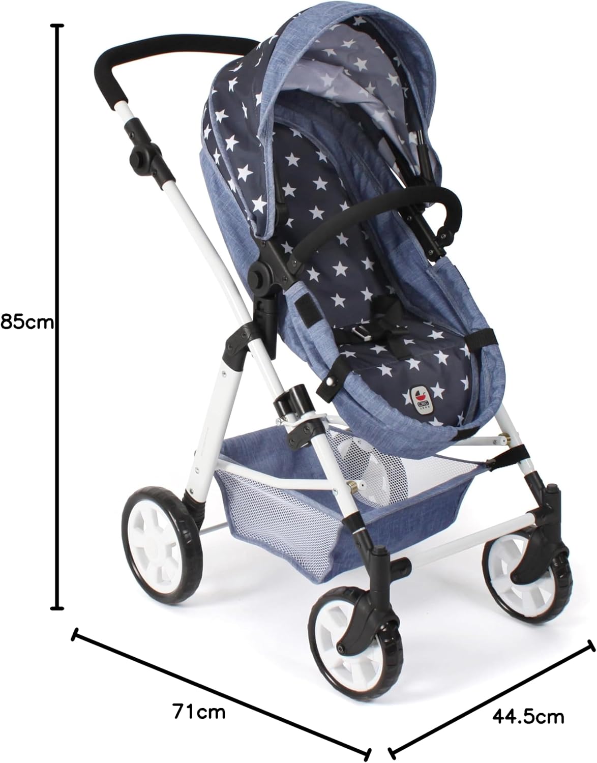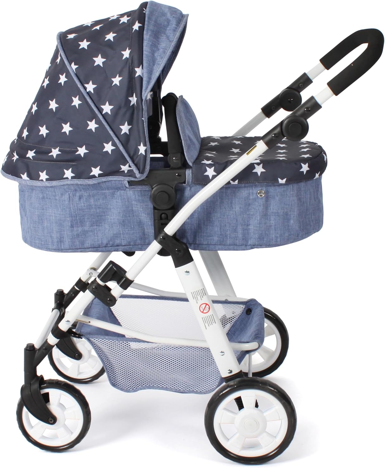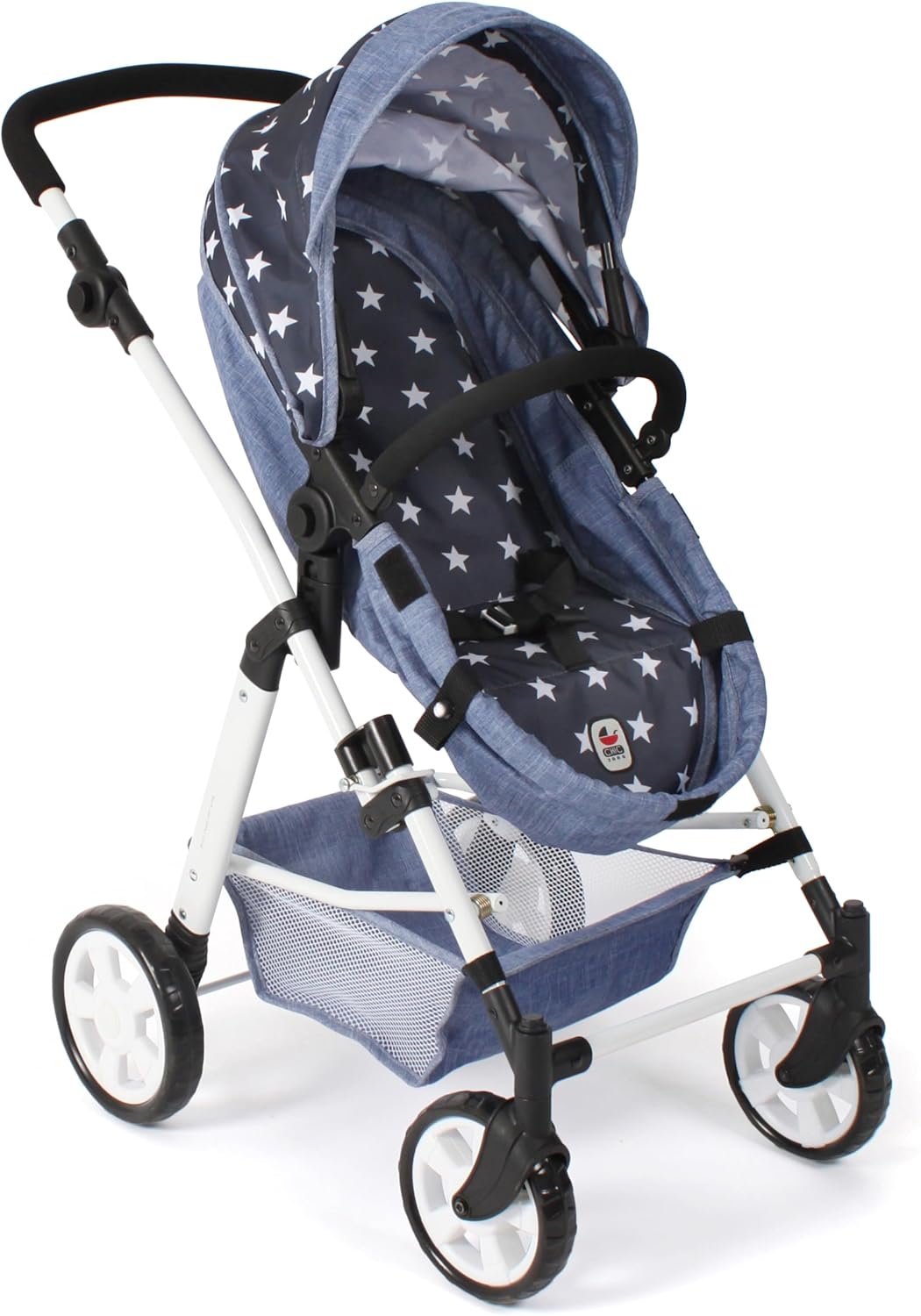 Passeggino per bambole dallo stile alla moda, con molte pratiche funzioni e telaio elegante La maniglia del passeggino è regolabile in altezza da 45 a 84 cm e si adatta così all'altezza del bambino Il passeggino per bambole è dotato di una cintura di sicurezza a 3 punti e può essere utilizzato sia in direzione di marcia che di fronte alla mamma delle bambole Il seggiolino sportivo ha una staffa di sicurezza e può essere trasformato con pochi gesti in vasca da bagno con superficie piana. La copertura della navicella funge anche da copertura antivento per il seggiolino sportivo Adatto per bambole fino a 50 cm (es. Baby Born o Baby Annabell). Dimensioni: 71 x 44,5 x 85 cm, dimensioni da chiuso: 67 x 44,5 x 25 cm, peso: 4,2 kg