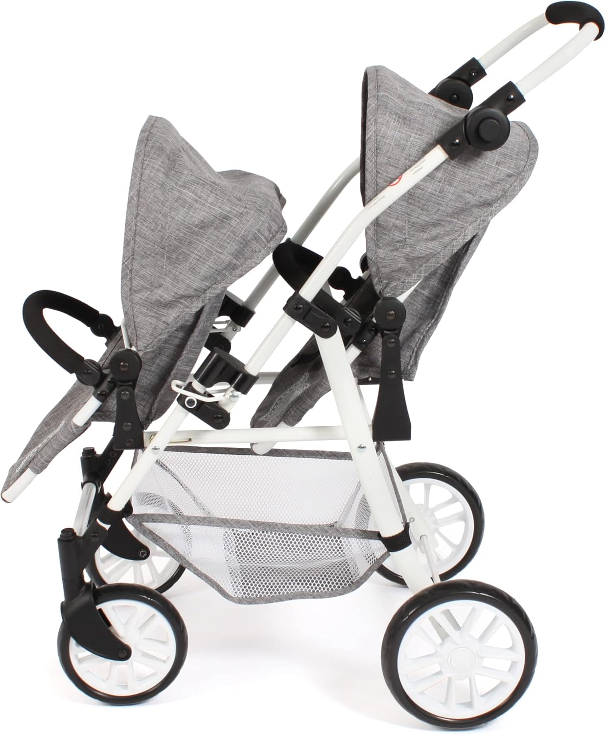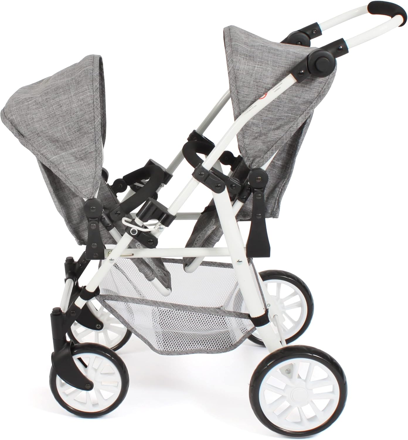 Moderna carrozzina doppia per bambole con due sedili sportivi rimovibili e regolabili fino alla posizione sdraiata I due sedili sportivi sono rimovibili e possono essere fissati in diverse direzioni La rotazione è facilitata grazie alle ruote anteriori girevoli Il passeggino tandem ha un cursore regolabile in altezza da 50 a 82 cm e quindi si adatta alle dimensioni del bambino. Adatto per bambini da 4 a 8 anni. Adatto per bambole fino a 46 cm; dimensioni dell'articolo: 63 x 43 x 77 cm; peso: 3,7 kg. Genere: femminile