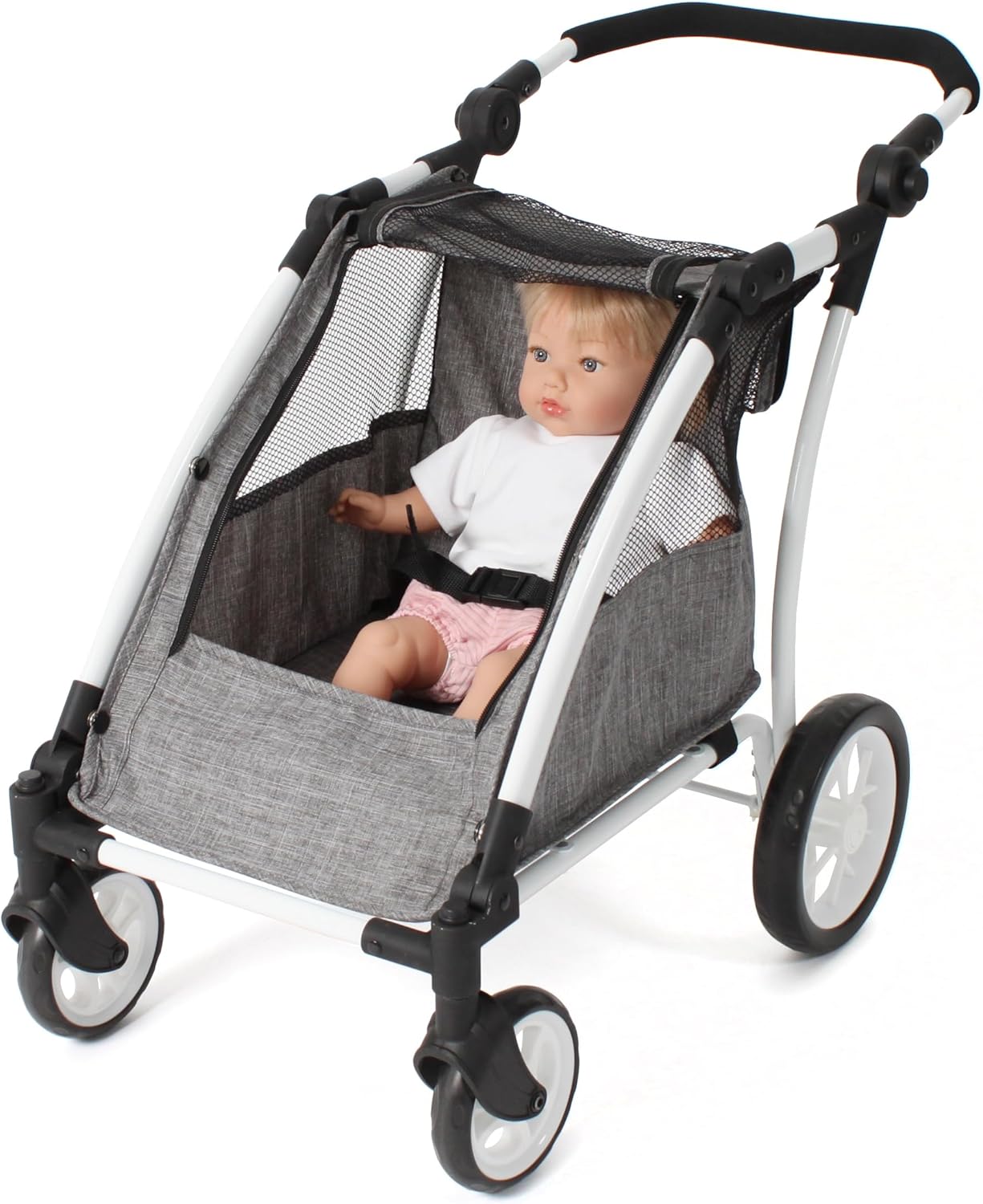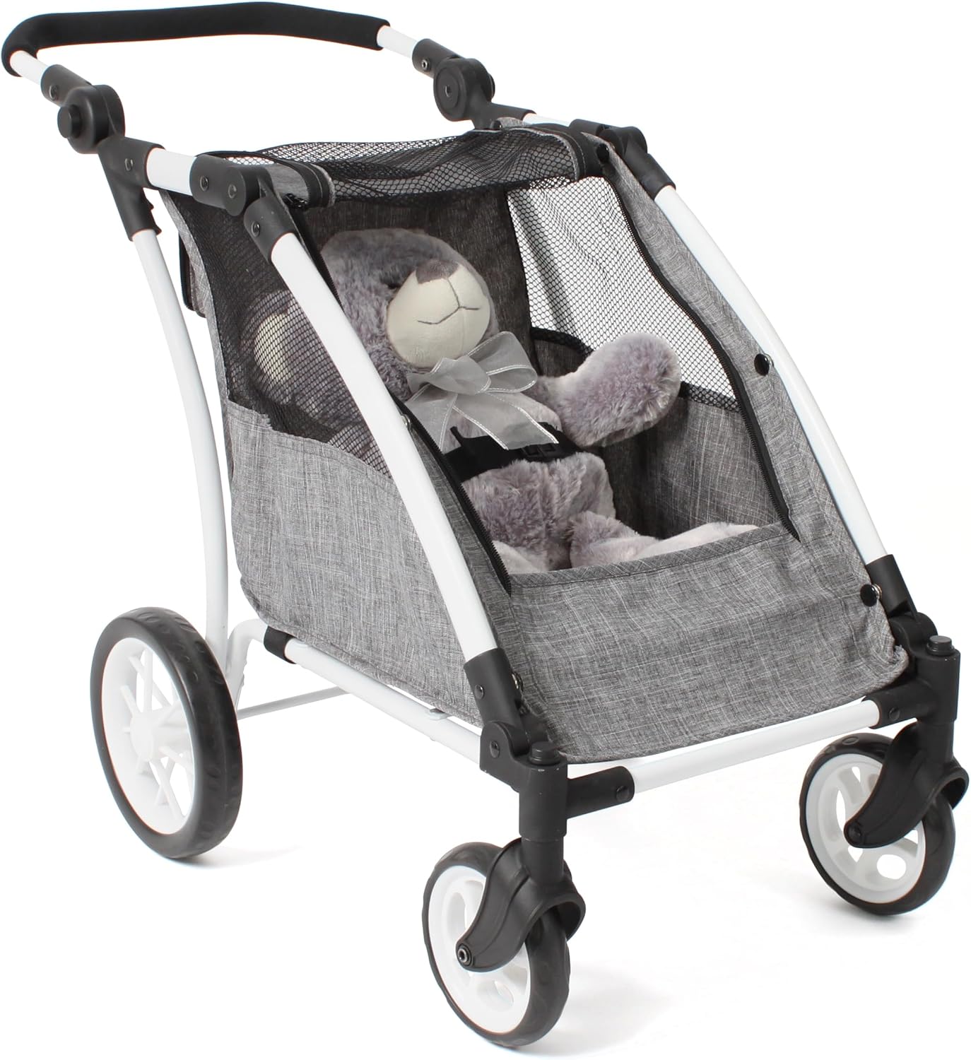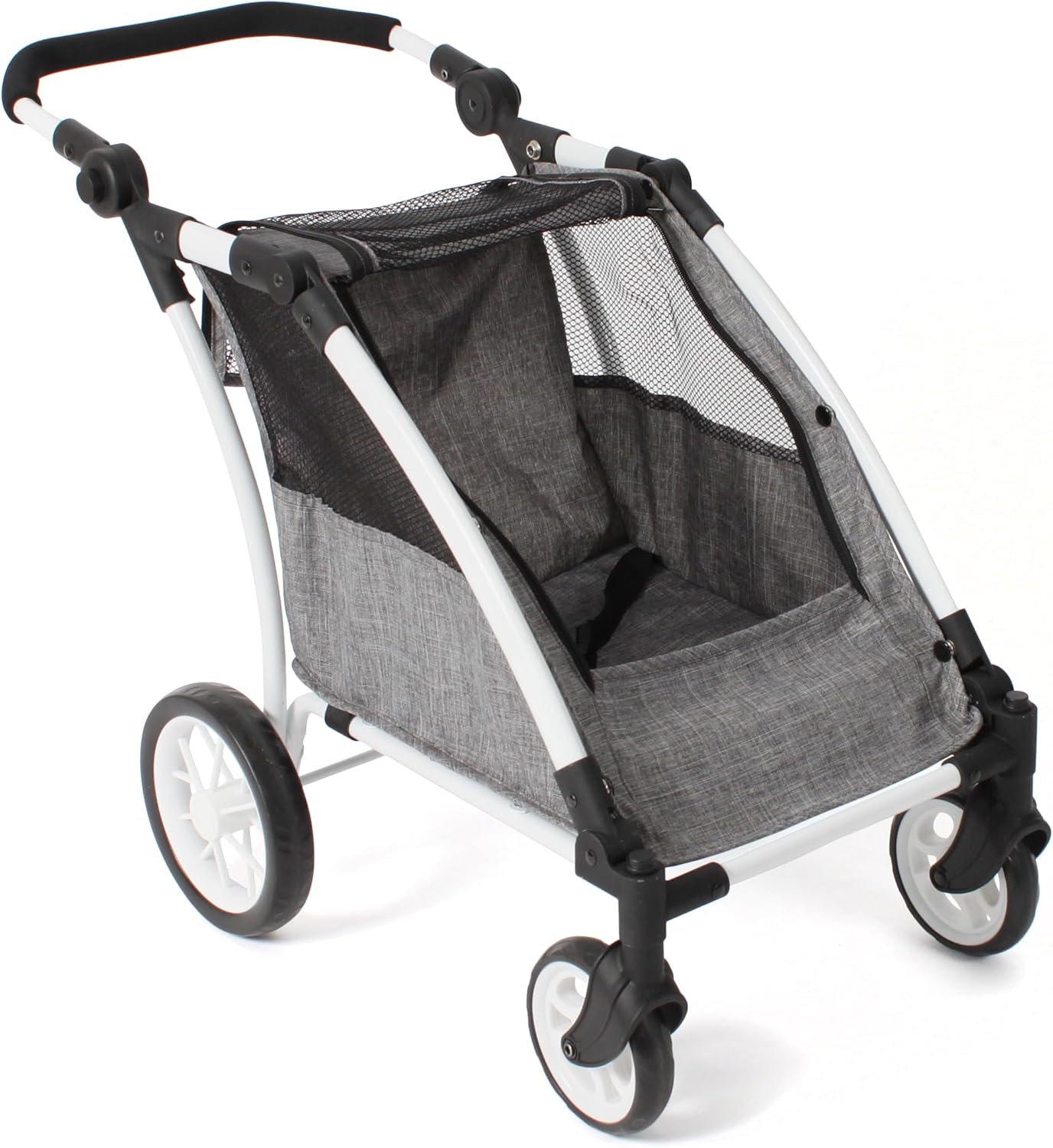 Divertimento senza limiti: il moderno passeggino per bambole combina un design elegante con un'elevata funzionalità e garantisce un sacco di divertimento Cresce con il bambino: la maniglia regolabile in altezza (33-71 cm) si adatta perfettamente alle dimensioni del tuo bambino, ideale per bambini dai 3 anni in su. Design moderno e funzionale: il design elegante e le ruote anteriori girevoli garantiscono un look realistico e una facile manovrabilità, sia all'interno che all'esterno. Il trailer Roadster può ospitare due bambole fino a una dimensione di 46 cm, ideale per giochi creativi e avventure. Azienda familiare in Francia: Bayer Chic 2000 è sinonimo di prodotti durevoli e di alta qualità che entusiasmano genitori e bambini da anni.