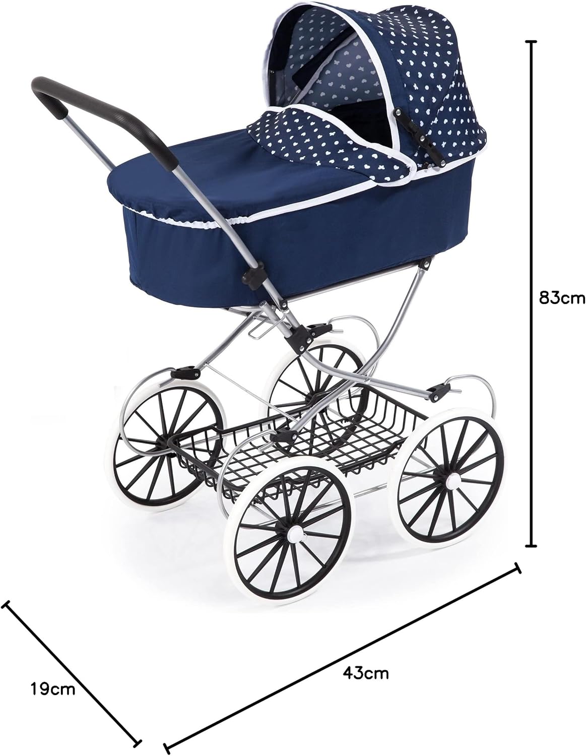 Massima Mobilità per Passeggiate Gioiose: Dotata di grandi ruote robuste e un'impugnatura morbida per garantire che ogni giro con la tua bambola sia divertente e senza sforzo. Spazio di Conservazione Pratico: Inclusa una borsa a tracolla elegante, perfetta per portare accessori per la bambola o giocattoli aggiuntivi, arricchendo il gioco con nuove possibilità. Cestino Integrato Spazioso: Offre un ampio spazio per tutti gli essenziali, permettendo alle piccole mamme e ai piccoli papà di portare tutto il necessario per una giornata fuori con la loro bambola.ssere trasportati nella borsa a tracolla in dotazione. Progettata per Bambole fino a 18 Pollici (46 cm): La carrozzina, spaziosa e versatile, può accogliere bambole o peluches fino a 46 cm, rendendola adatta a una vasta gamma di giocattoli. Dimensioni Perfette per una Comoda Utilizzabilità: Misurando 70cm x 42cm x 89cm con un'altezza del manubrio di 82 cm, progettata per essere facilmente spinta dai bambini, assicurando una vestibilità comoda per varie età.