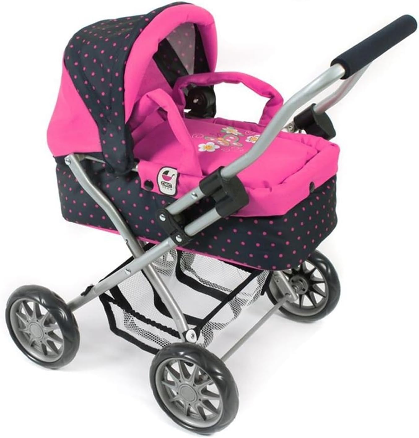 Carrozzina per bambole combinata dal design moderno per bambole fino a 46 cm! Grazie al manubrio regolabile è possibile adattarla in maniera ottimale all'altezza dei bambini. Il vano della carrozzina può essere girato sia verso il senso di marcia che nella direzione di chi la guida. Grazie ai pratici pulsanti può essere trasformata in un passeggino sportivo. La copertura del vano è ideale per proteggere la bambola dal sole o dal vento. La carrozzina comprende, fra le altre cose, ruote anteriori girevoli che permettono di curvare in maniera particolarmente agile. Nella borsa in dotazione è possibile riporre tutti gli accessori importanti per la bambola. La carrozzina per bambole è molto facile da richiudere per il trasporto.