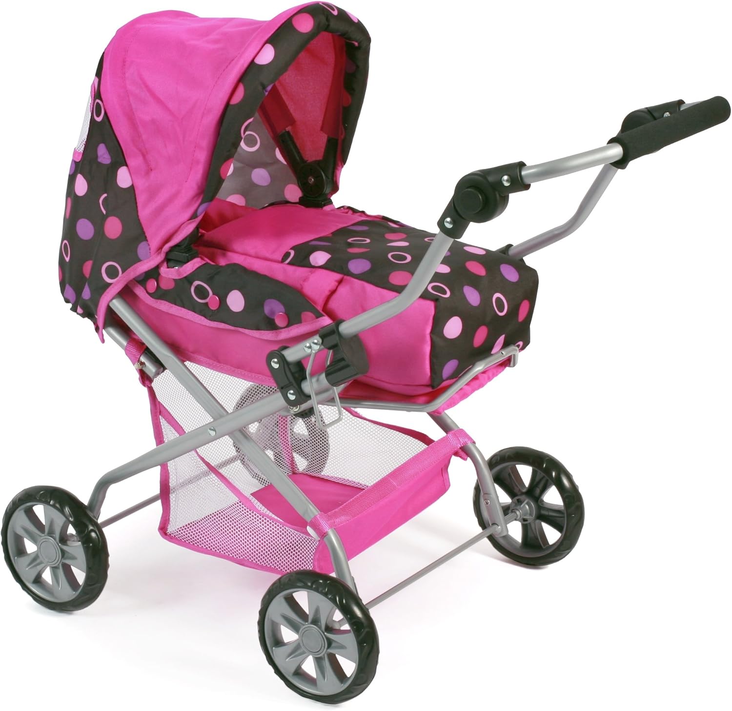Carrozzina City Neo (per bambole fino a 52 cm) con bellissimo motivo Manubrio regolabile da 59 a 79 cm Trasformabile in un passeggino per bambole Ruote anteriori girevoli e City Neo è molto facile da richiudere Con borsa e cestino integrato