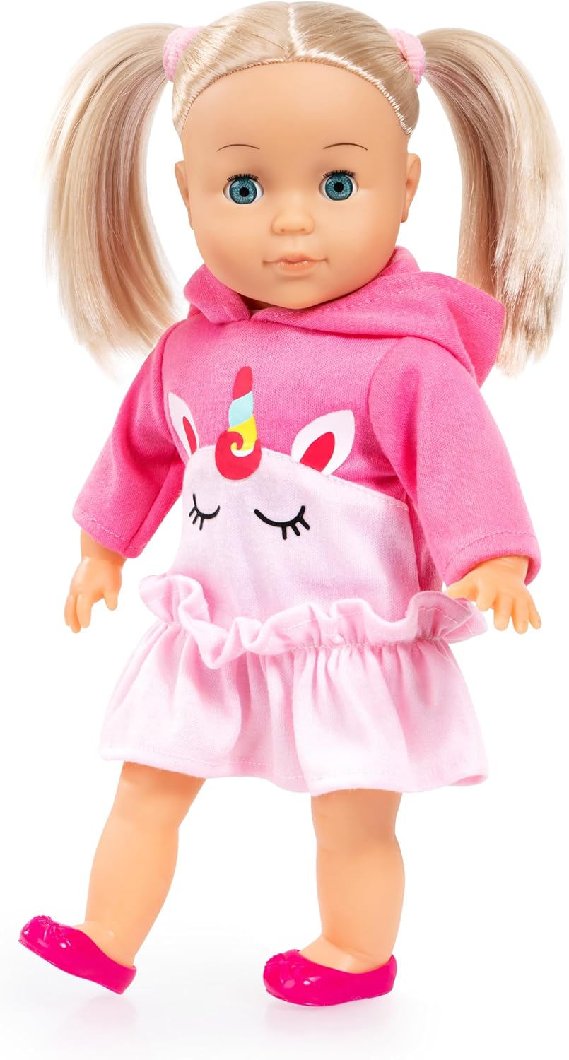 Bambola da 33 cm con capelli carini e vestitino carino La bambola ha un corpo morbido da coccolare Bambola interattiva che ride e fa i rumori dei baci Dimensioni comode ideali da portare in viaggio Con spazzola e fermaglio per capelli per decorare e acconciare