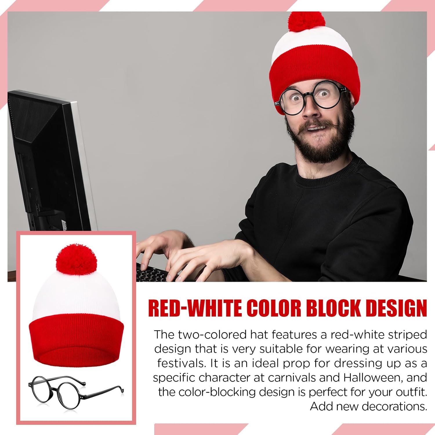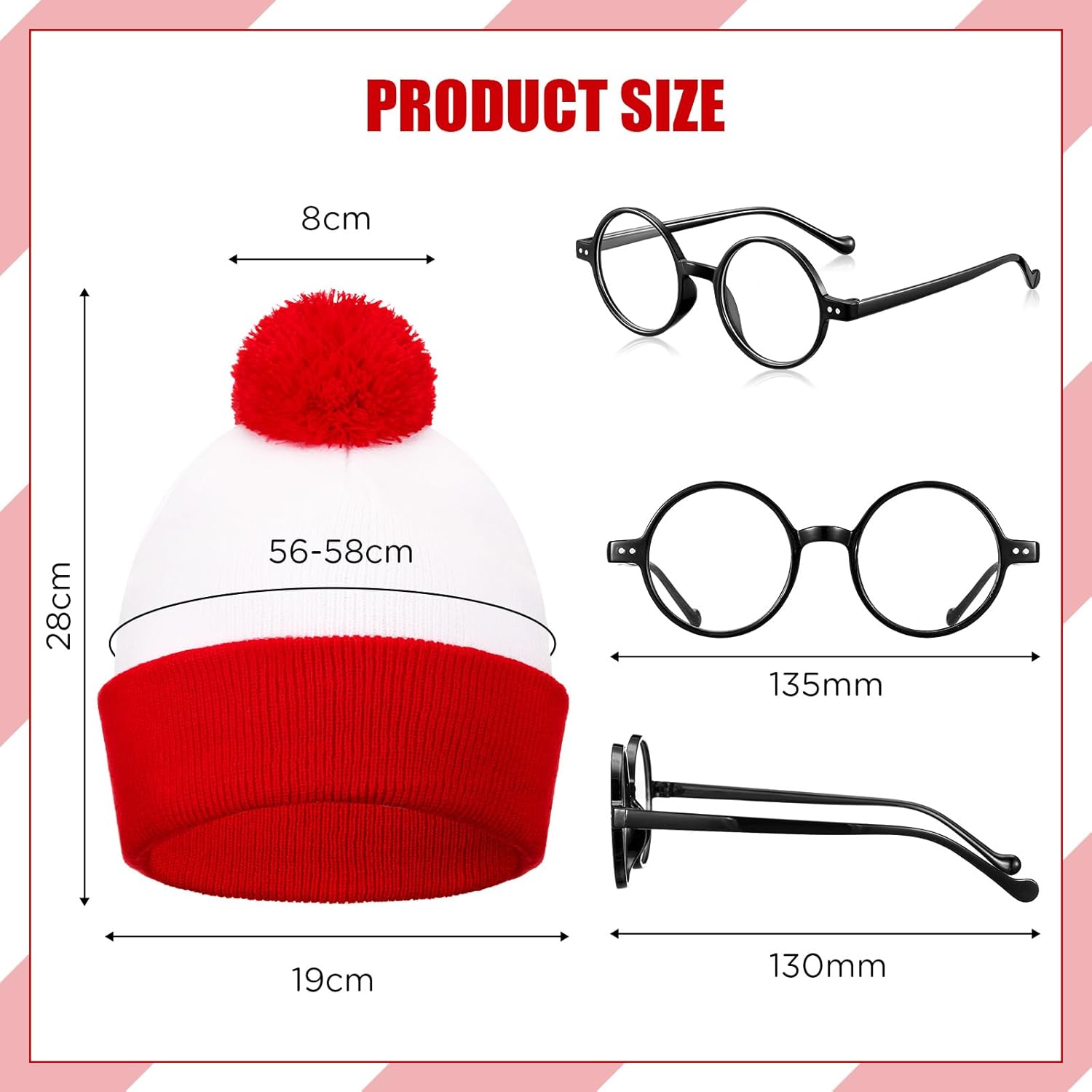 Descrizione prodotto Caratteristiche: Gli oggetti di scena di carnevale sono perfetti per cosplay, feste in costume, carnevale, Halloween, Natale e altre feste a tema. Le montature per occhiali rotonde sono semplici e carine e possono essere facilmente abbinate a diversi vestiti. Con occhiali carini e divertenti, puoi scattare tante foto divertenti ed essere al centro dell'attenzione. Specifiche: Materiale: Occhiali da nerd: plastica Cappello lavorato a maglia: fibra acrilica Colore: come mostrato Dimensioni: Occhiali: circa 14 x 14,5 cm Cappello: circonferenza della testa ca. 56-58 cm. La confezione include: 1 cappello con pompon rosso e bianco 1 occhiali da nerd Note: Si prega di consentire lievi errori di misurazione dovuti alla misurazione manuale. Il colore può variare leggermente a causa delle diverse visualizzazioni dello schermo. Avviso di sicurezza /
