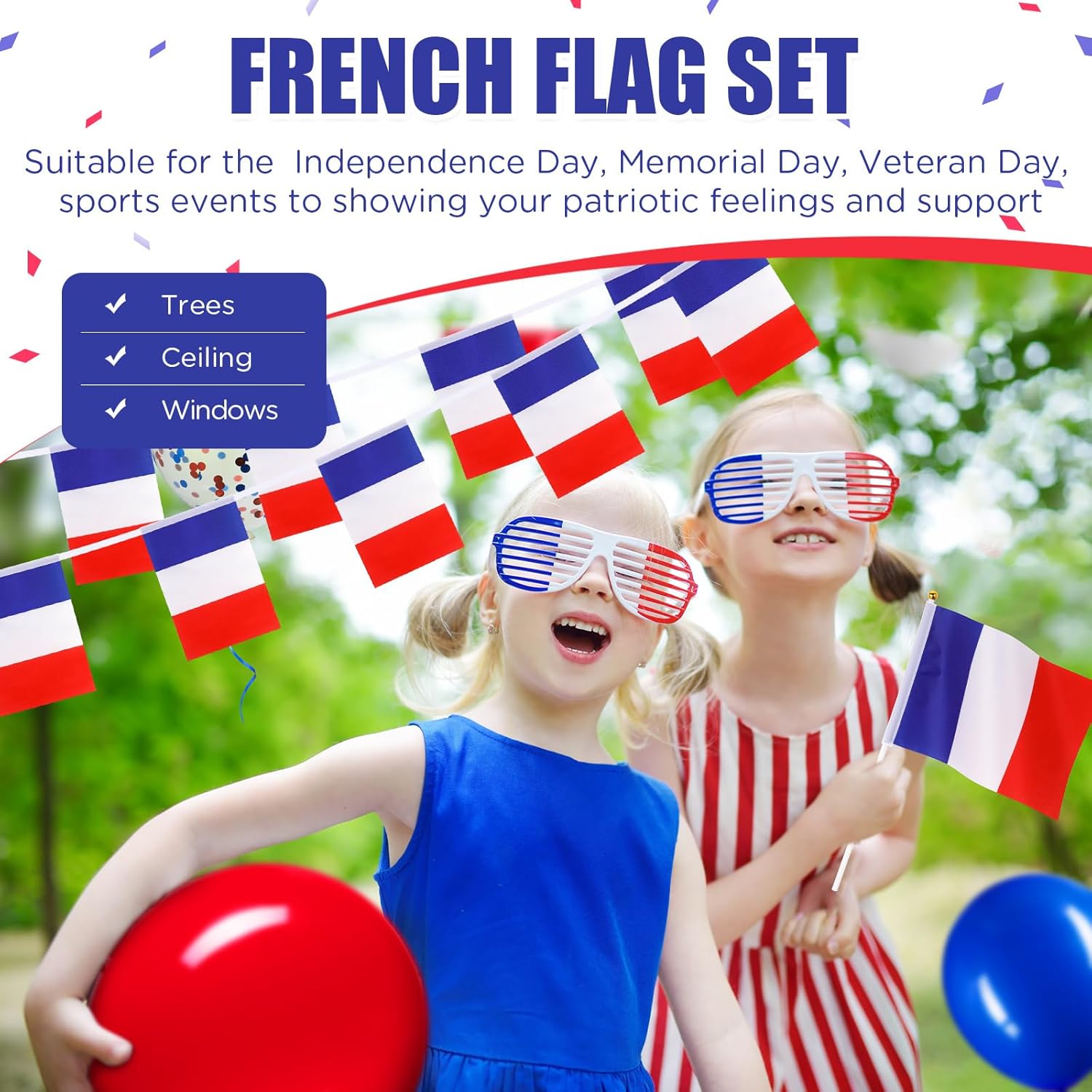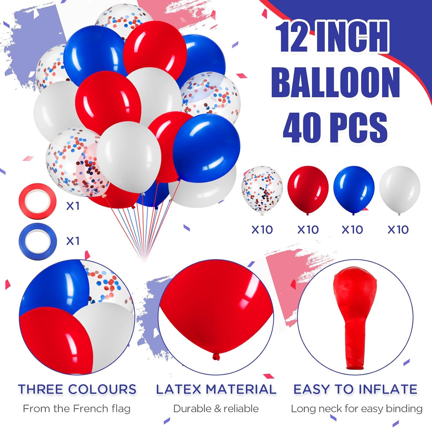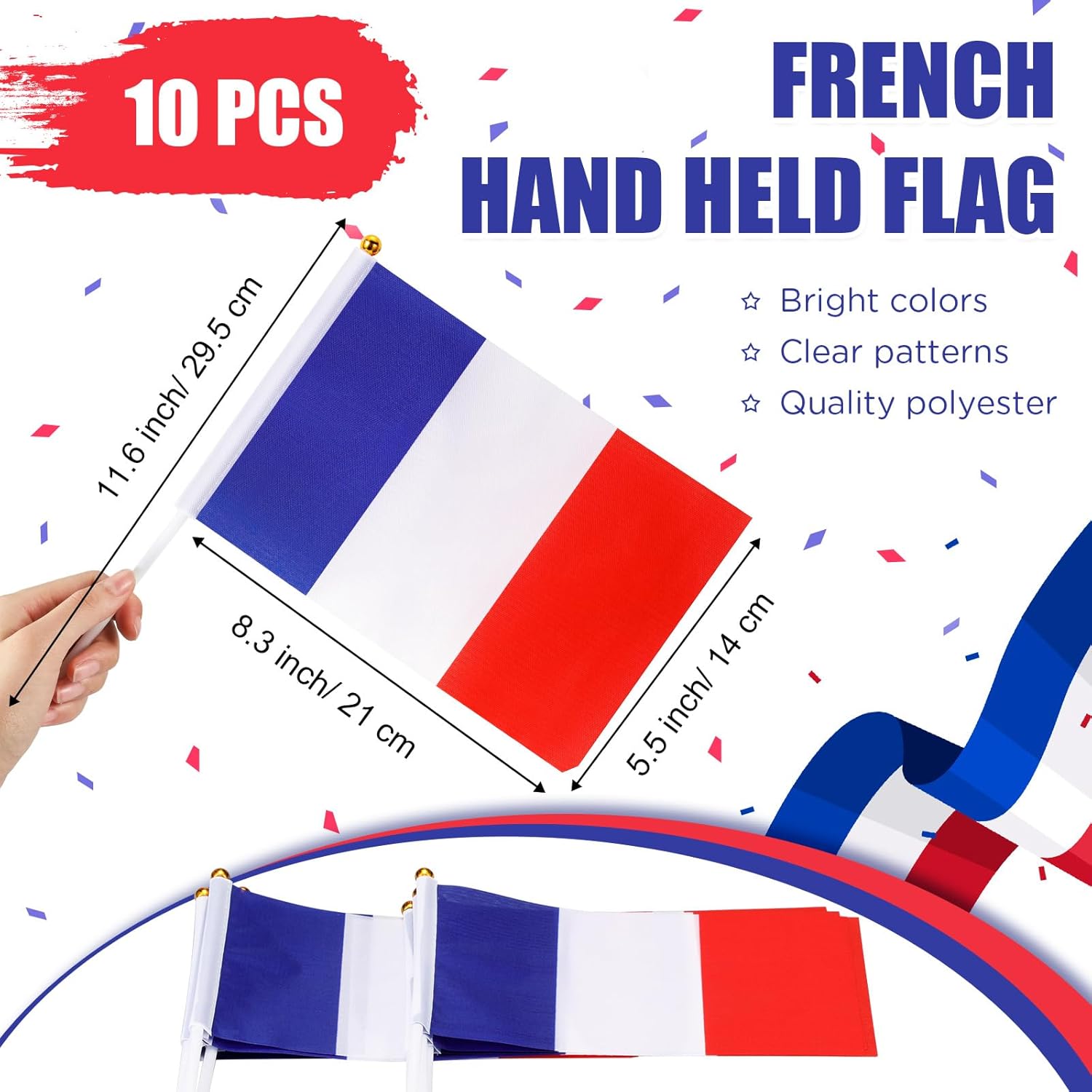 Set di decorazioni per bandiere francesi: il pacchetto include un set di striscioni francesi, 10 bandiere francesi a mano e 30 palloncini francesi da 12 pollici in rosso, bianco e blu, 10 per ogni colore; La bella combinazione e la quantità sufficiente possono soddisfare le tue esigenze di decorazione natalizia e puoi anche preparare una festa indimenticabile per i tuoi amici e parenti francesi o per coloro che stanno per andare al set di striscioni francesi: lo striscione è di circa 5 metri/ 16,4 piedi e ogni bandiera è lunga circa 28 cm/ 11 pollici, larga 20 cm/ 7,9 pollici e la distanza tra ciascuna bandiera è di circa 17 cm/ 6,7 pollici e la bandiera è realizzata principalmente in poliestere, non facile da sbiadire e Bandiera a mano deformata, colorata e liscia: i pali di queste bandiere a mano sono lunghi circa 29,5 cm/ 11,6 pollici e la bandiera è lunga circa 21 cm/ 8,3 pollici e larga circa 14 cm/ 5,5 pollici, principalmente realizzata in poliestere, con bordi trasparenti. Motivi e colori vivaci possono resistere all'uso a lungo termine Palloncino in 3 colori: il peso di ciascun palloncino è di circa 2,8 g/ 0,01 once e il diametro è di circa 30,5 cm/ 12,01 pollici dopo essere stato completamente gonfiato; È realizzato principalmente in lattice, che ha una buona capacità di allungamento, spesso e sicuro, non sbiadisce o si rompe facilmente; Questi palloncini possono essere appesi al muro o posizionati sul pavimento o sul tavolo, oppure combinati per creare un meraviglioso arco di palloncini o un bouquet di palloncini Adatti per la maggior parte delle occasioni: queste decorazioni possono essere appese al soffitto, alle porte, alle finestre e agli alberi durante la Festa Nazionale, feste di addio, mostre o supermercati per mostrare i tuoi forti sentimenti patriottici e possono anche essere utilizzate per partecipare a eventi sportivi e possono anche essere appesi a casa o nelle scuole per attività educative volte a rafforzare l'identità nazionale e l'atmosfera festosa